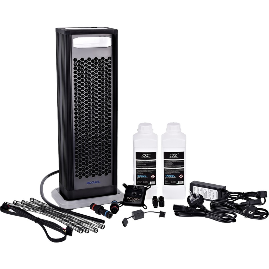 Réservoir éclairé, radiateur externe, 6x ventilateurs Eiswind, bloc d'alimentation externe