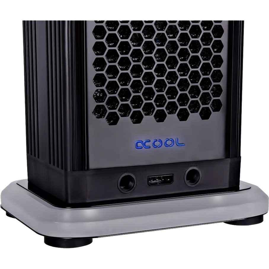 Le Eiswand 360 CPU est le radiateur externe en cuivre massif de 360 mm, qui est équipé de six ventilateurs Eiswind. Le système offre ainsi une très grande capacité de refroidissement. Comme on le sait, le cuivre offre une conductivité thermique deux fois plus élevée que l’aluminium, qui est souvent utilisé dans des systèmes peu coûteux. Les six ventilateurs Eiswind sont construits dans la version Push&Pull. Cela permet une aération optimale du radiateur.Le réservoir éclairé est situé directement sur le radiateur extérieur. Là, le niveau peut être facilement contrôlé par les grandes fenêtres de visualisation et peut être rempli par l’orifice de remplissage situé en haut. Le fond élégant et également éclairé de la paroi de glace contient deux pompes silencieuses DC-LT qui sont également utilisées dans d’autres systèmes Alphacool. Par exemple dans l’Alphacool Eisbaer, qui est loué pour son faible volume. La capacité de refoulement des deux pompes est si élevée que même dans le cas peu probable où l’une des deux pompes tomberait en panne, il n’y a pas d’inconvénient pertinent pour le refroidissement. Une pompe est assez puissante pour maintenir en vie un simple circuit. Le refroidisseur XP inclus est l’un des refroidisseurs les plus puissants du marché et est compatible avec toutes les connexions Intel et AMD actuelles.Bien entendu, le kit contient toutes les autres pièces nécessaires, comme un tuyau de 4 mètres de long, les bons raccords et le fluide nécessaire. Un adaptateur silencieux permet un fonctionnement quasi-silencieux. Les pompes et les ventilateurs en sont fortement épaissis, la capacité de refroidissement ne diminue que légèrement.