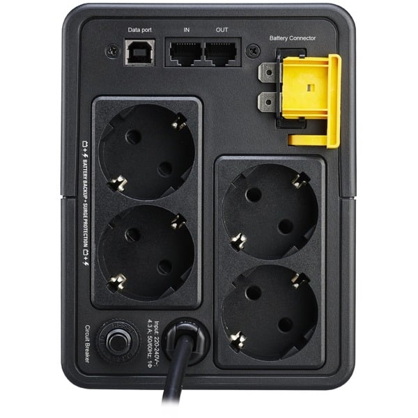L’onduleur APC Back-UPS 950VA, 230V, AVR, prises Schuko (BX950MI-GR) est un système d’onduleur avec protection contre les surtensions pour les appareils électroniques et les ordinateurs. La régulation automatique de la tension (AVR) augmente automatiquement et progressivement la basse tension et réduit la haute tension à des niveaux adaptés aux appareils. La protection contre les surtensions protège les appareils connectés contre les surtensions sur les lignes de données. Via un port USB, vous pouvez utiliser votre PC pour accéder à des fonctions de gestion supplémentaires de l’onduleur.