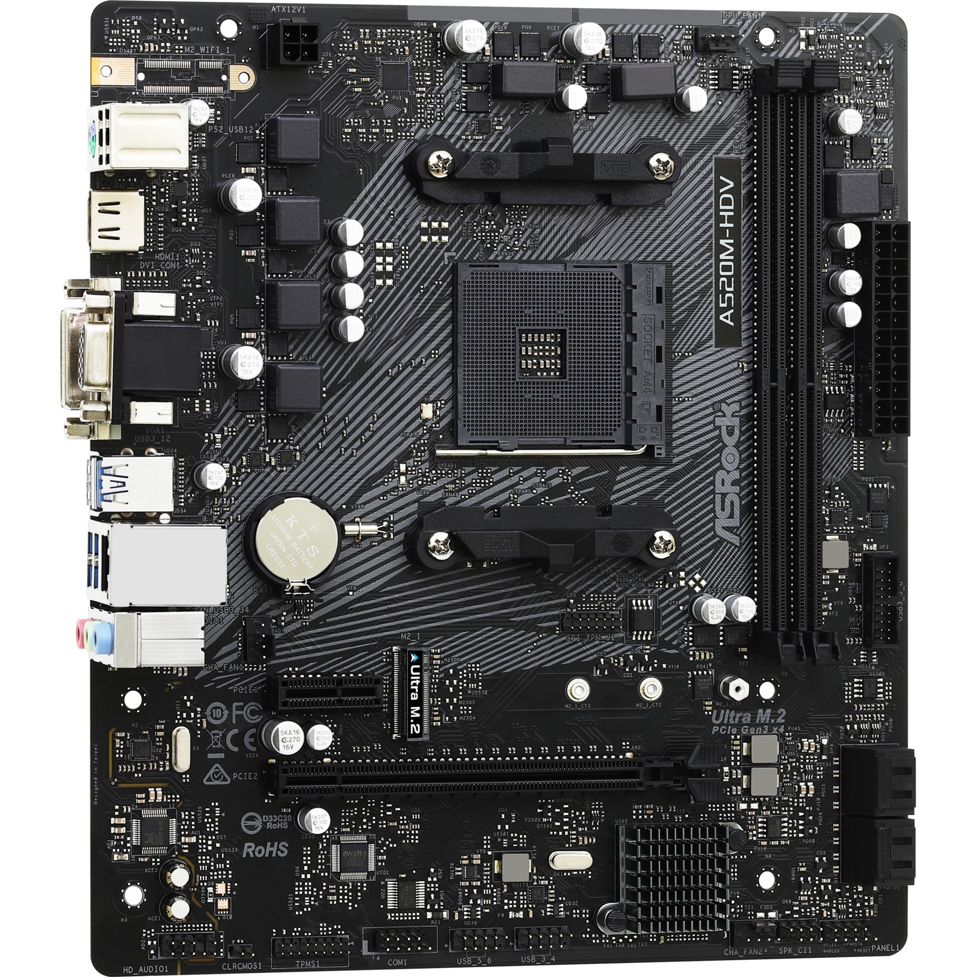 L ASRock A520M-HDV se presente comme une solution compacte et rationnelle pour les utilisateurs souhaitant assembler une configuration performante sur le socket AM4. Architecturee autour du chipset AMD A520 au format ΜATX, cette carte mere offre une base technique robuste pour des stations de travail ou des PC multimedia. Son poids de 786 gramme(s) et son systeme d alimentation ATX12V 2.0 24 + 4-Pin facilitent son integration dans une large variete de boitiers, tout en assurant une stabilite de fonctionnement conforme aux attentes.