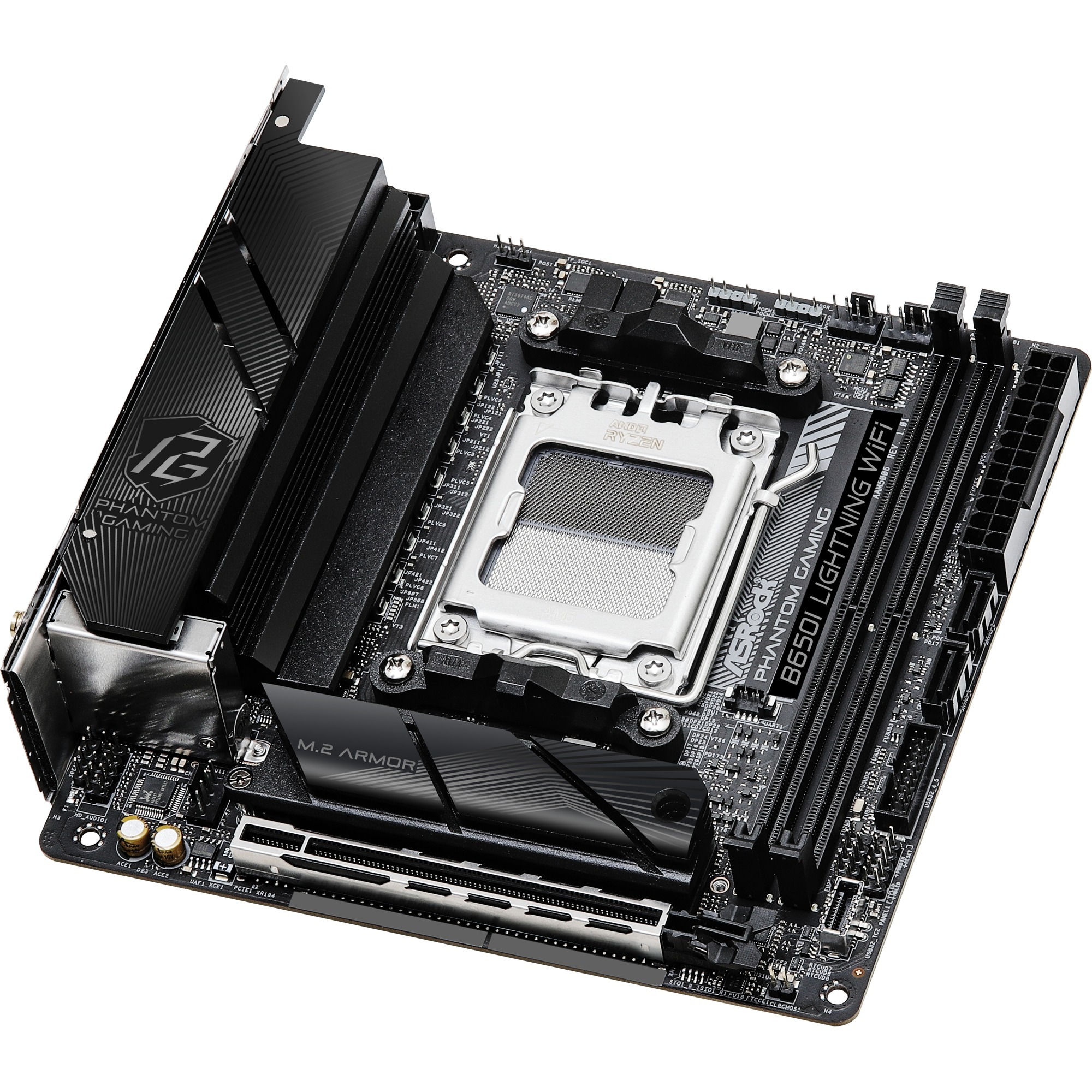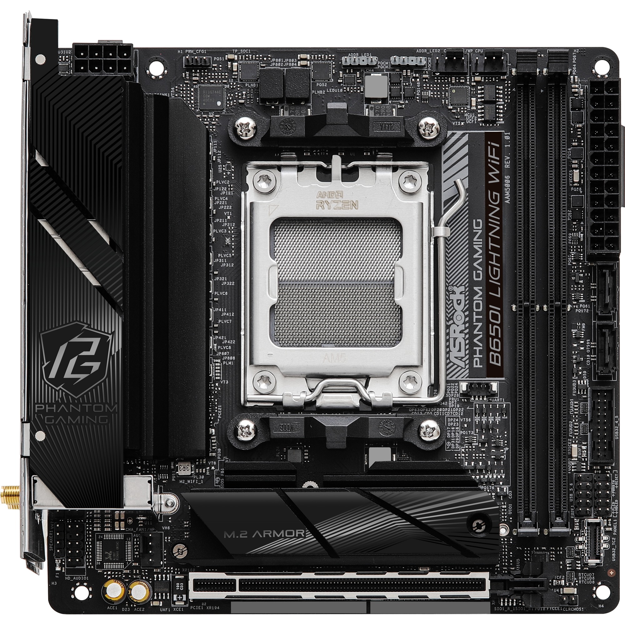 La ASRock B650I Lightning WiFi s’impose comme une solution de choix pour vos configurations compactes de type Mini-ITX. Conçue autour du socket AM5 et du chipset AMD B650, cette carte mère affiche des dimensions de 170 mm par 170 mm. Elle assure une compatibilité étendue avec les processeurs Ryzen des générations 7000, 8000 et les derniers 9000, permettant d’accueillir des modèles performants comme les variantes X3D ou Granite Ridge.