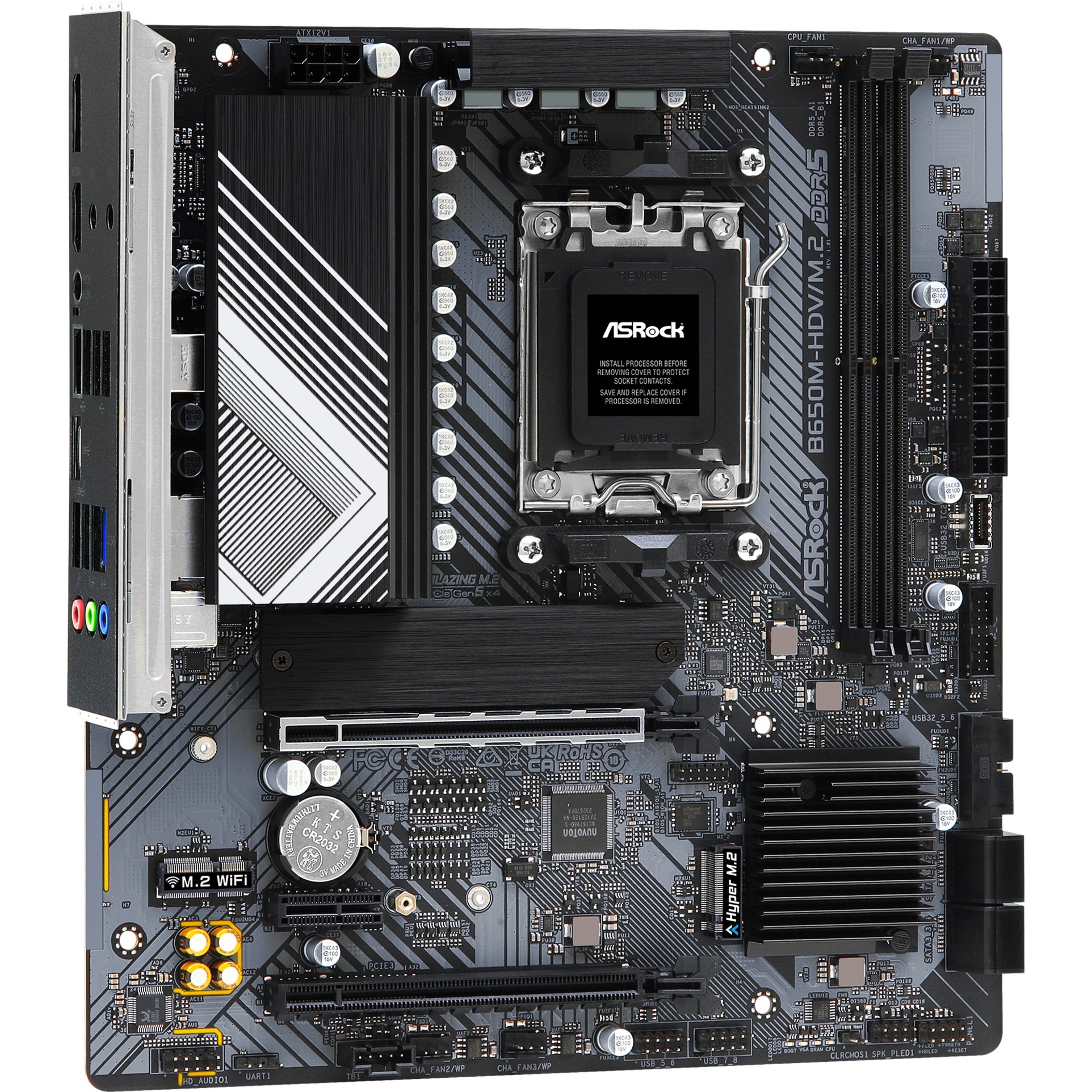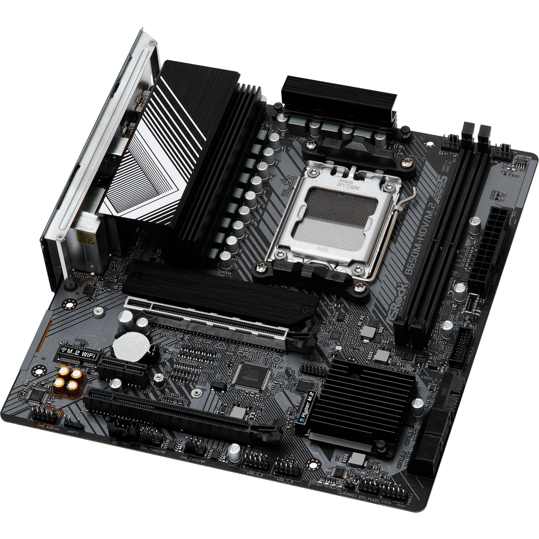 L’ASRock B650M-HDV/M.2 se positionne comme une solution équilibrée pour les utilisateurs souhaitant passer à l’architecture AM5. Basée sur le chipset AMD B650, cette carte mère au format µATX offre des dimensions compactes de 226 mm de largeur par 244 mm de hauteur. Elle supporte une vaste gamme de processeurs, incluant les séries Ryzen 5, 7 et 9 des générations Raphael, Phoenix et Granite Ridge, vous assurant une compatibilité avec les standards de performance les plus récents.