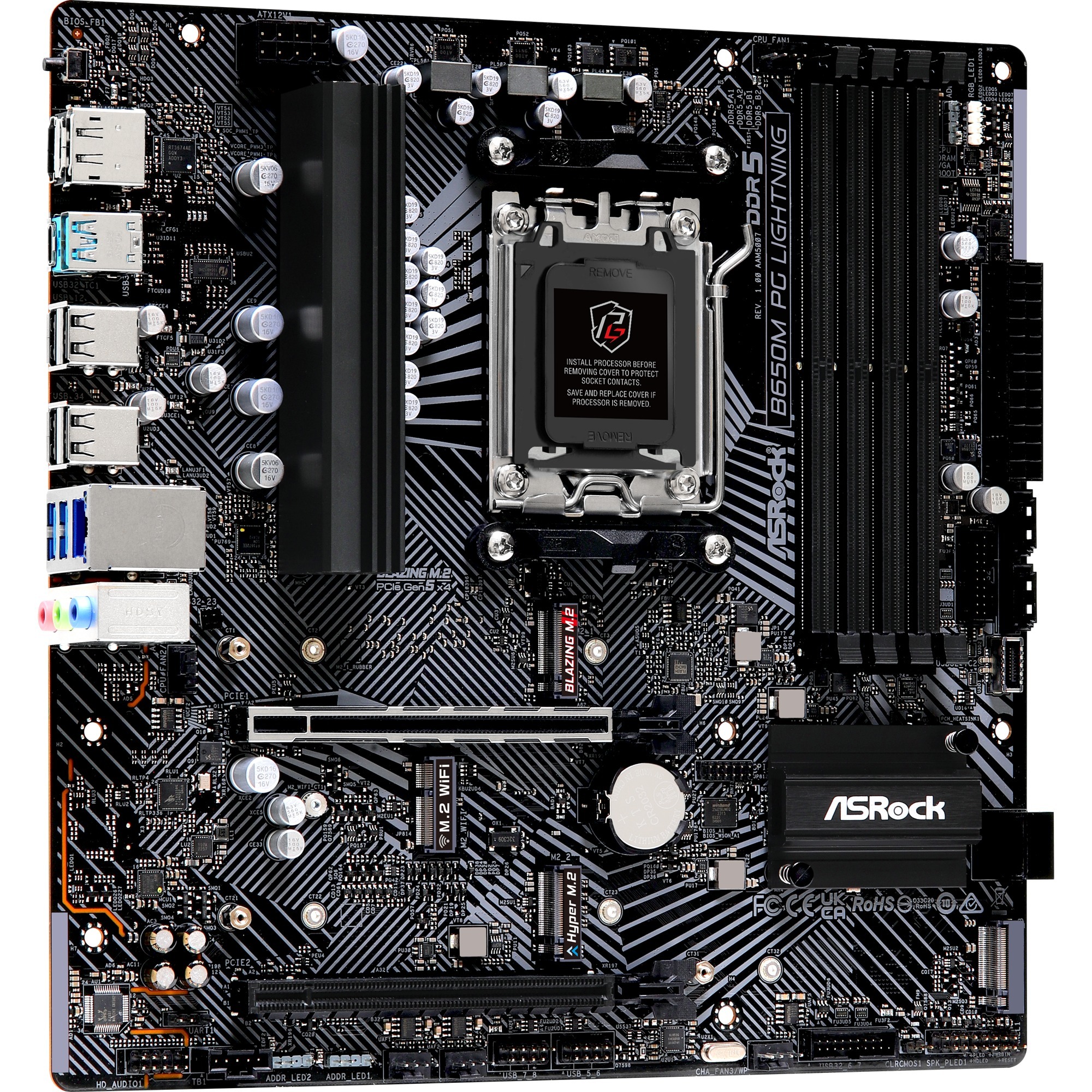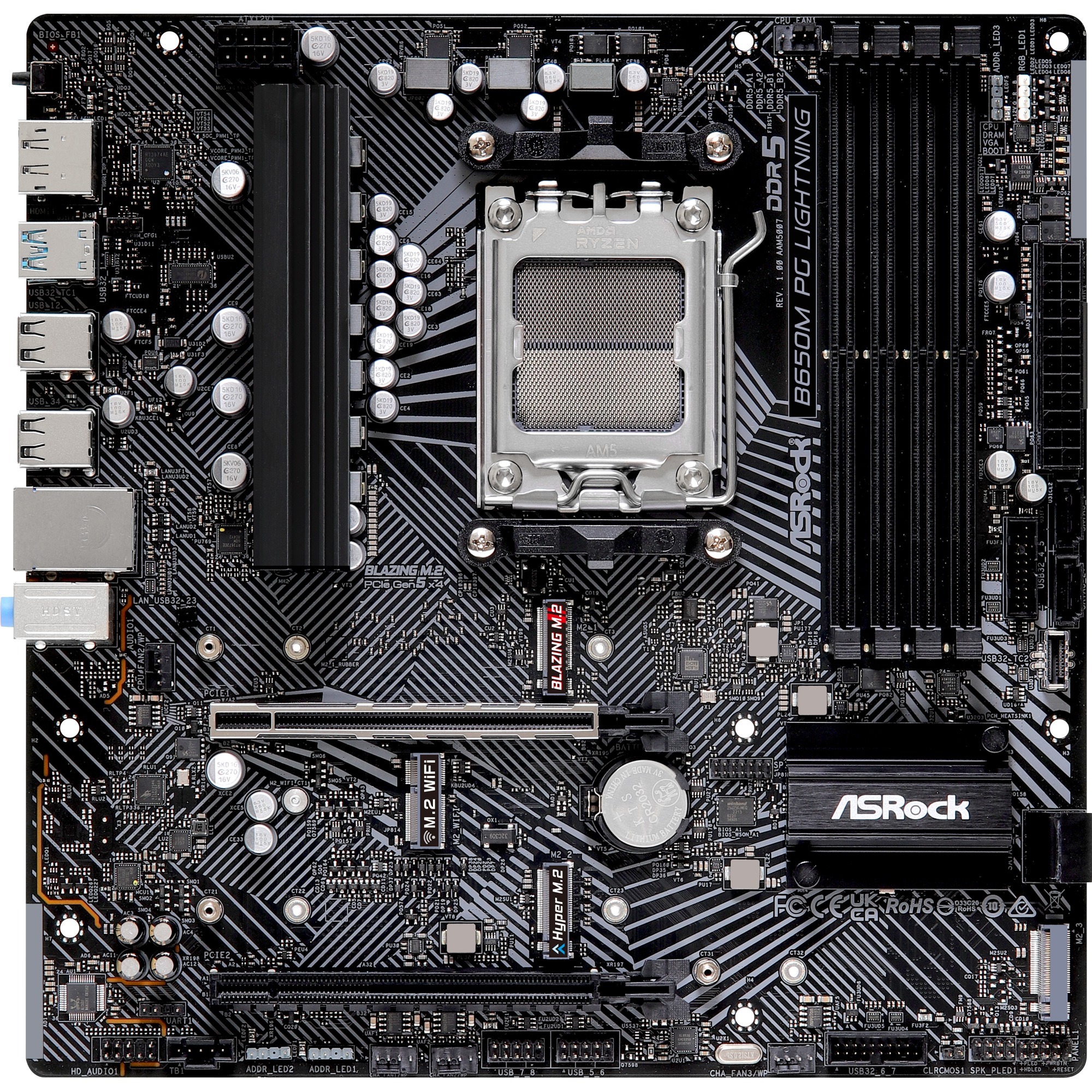 La B650M PG LIGHTNING est basée sur le chipset AMD B650 et prend en charge les processeurs AMD avec un socket AM5. Elle dispose de quatre emplacements DDR5 pouvant accueillir jusqu’à 192 Go de mémoire vive. La carte B650M PG LIGHTNING est également équipée d’un emplacement PCIe 4.0 x 16 et d’un emplacement PCIe 3.0 x 16. En outre, la carte B650M PG LIGHTNING dispose d’un son à 8 canaux, d’une interface LAN 2,5 Gigabit, de quatre ports SATA3, de trois ports M.2 et d’un certain nombre d’interfaces USB.