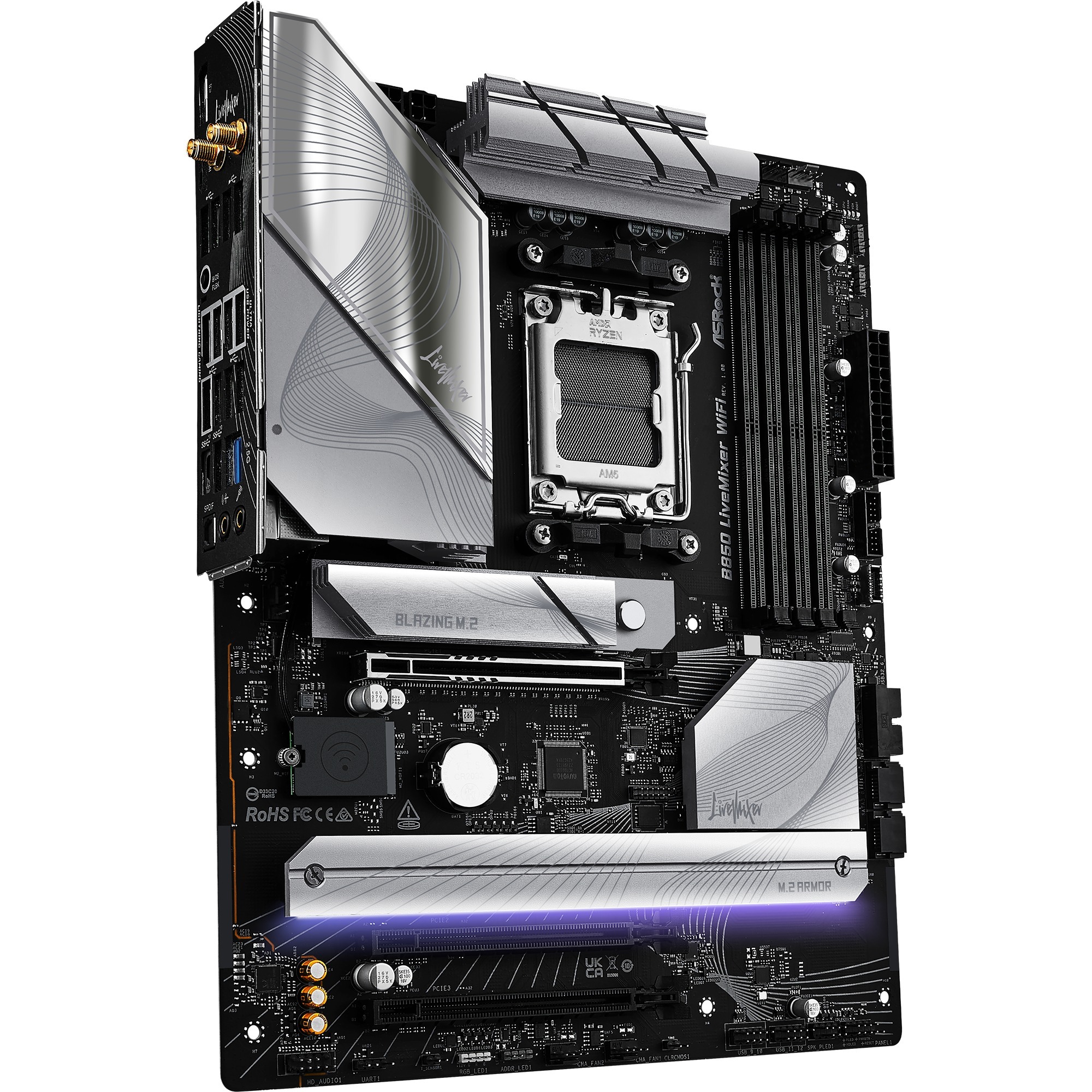 La carte mère ASRock B850 LiveMixer WiFi est basée sur le chipset AMD B850 et prend en charge les processeurs AMD pour le socket AM5. Elle dispose de quatre emplacements DDR5 pour un maximum de 256 Go de RAM. L’ASRock B850 LiveMixer WiFi est également équipée d’un emplacement PCIe 5.0 x16 et de deux emplacements PCIe 4.0 x16. La carte mère ASRock B850 LiveMixer WiFi dispose également d’un son 8 canaux, d’une interface LAN 2,5 Gigabit, du Wi-Fi 7, du Bluetooth 5.4, de deux ports SATA3, de trois ports M.2 et de plusieurs interfaces USB.