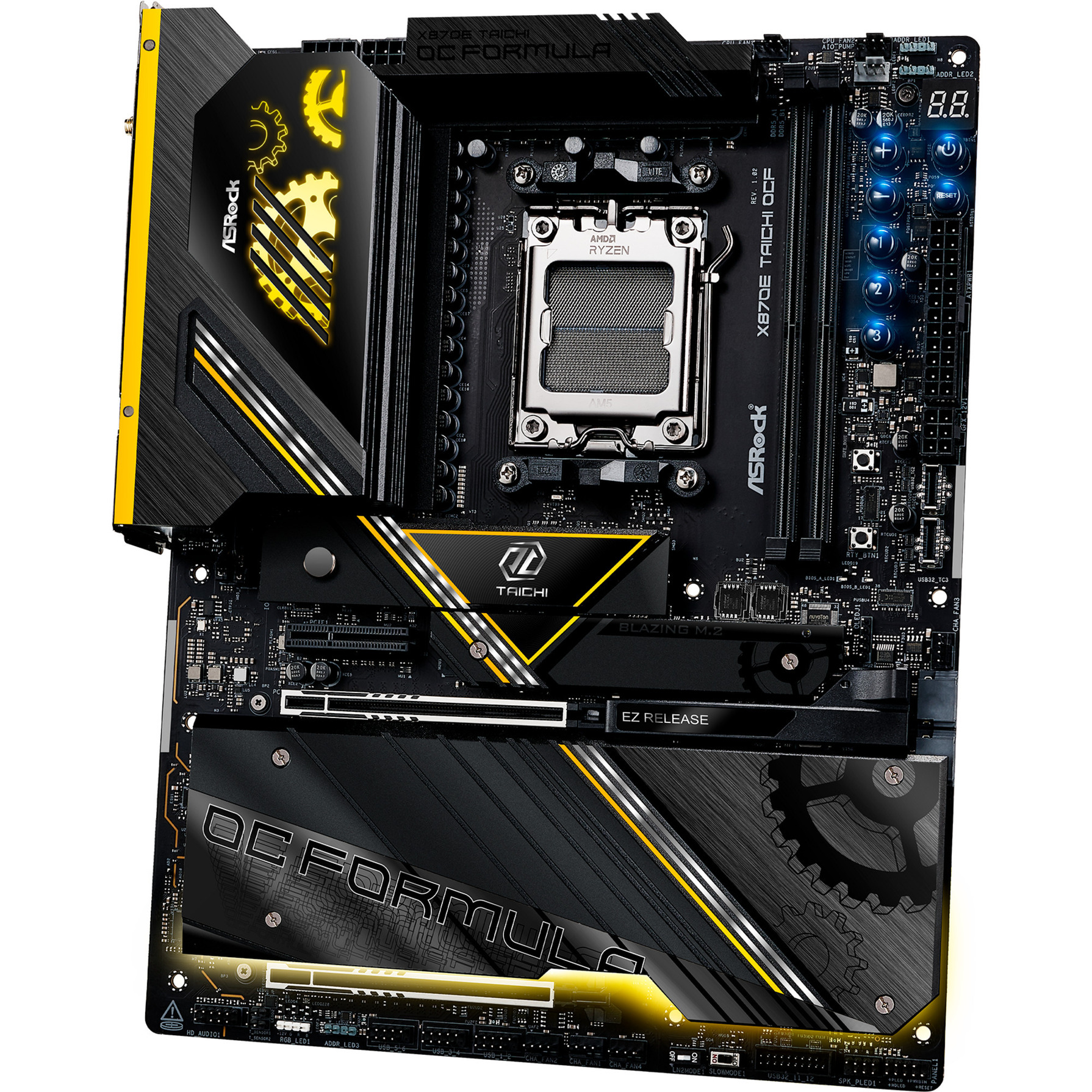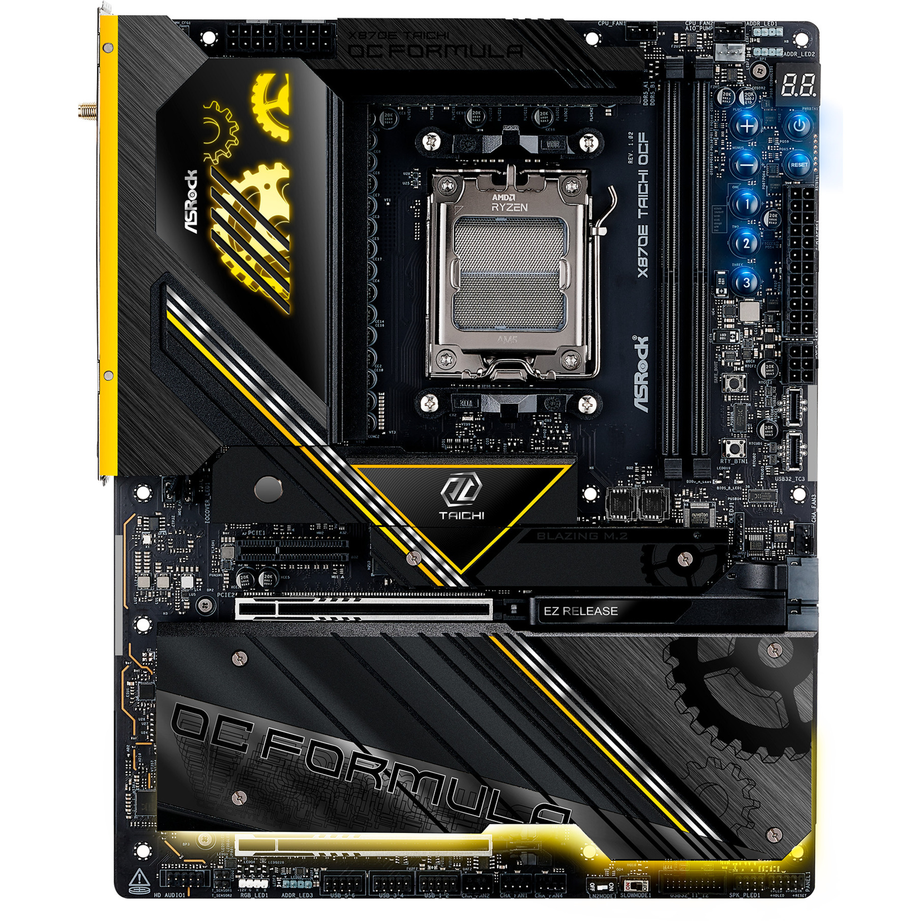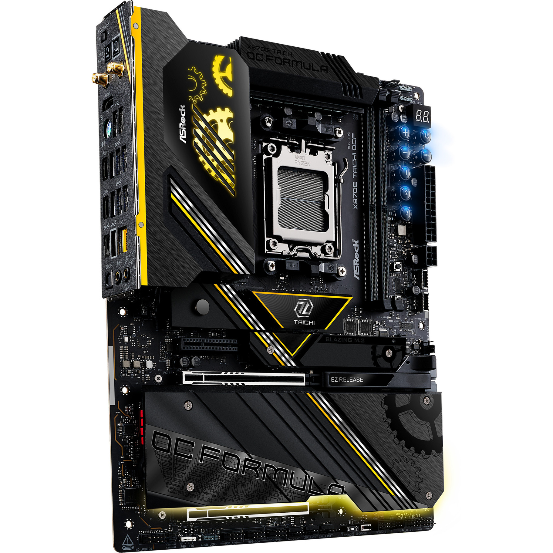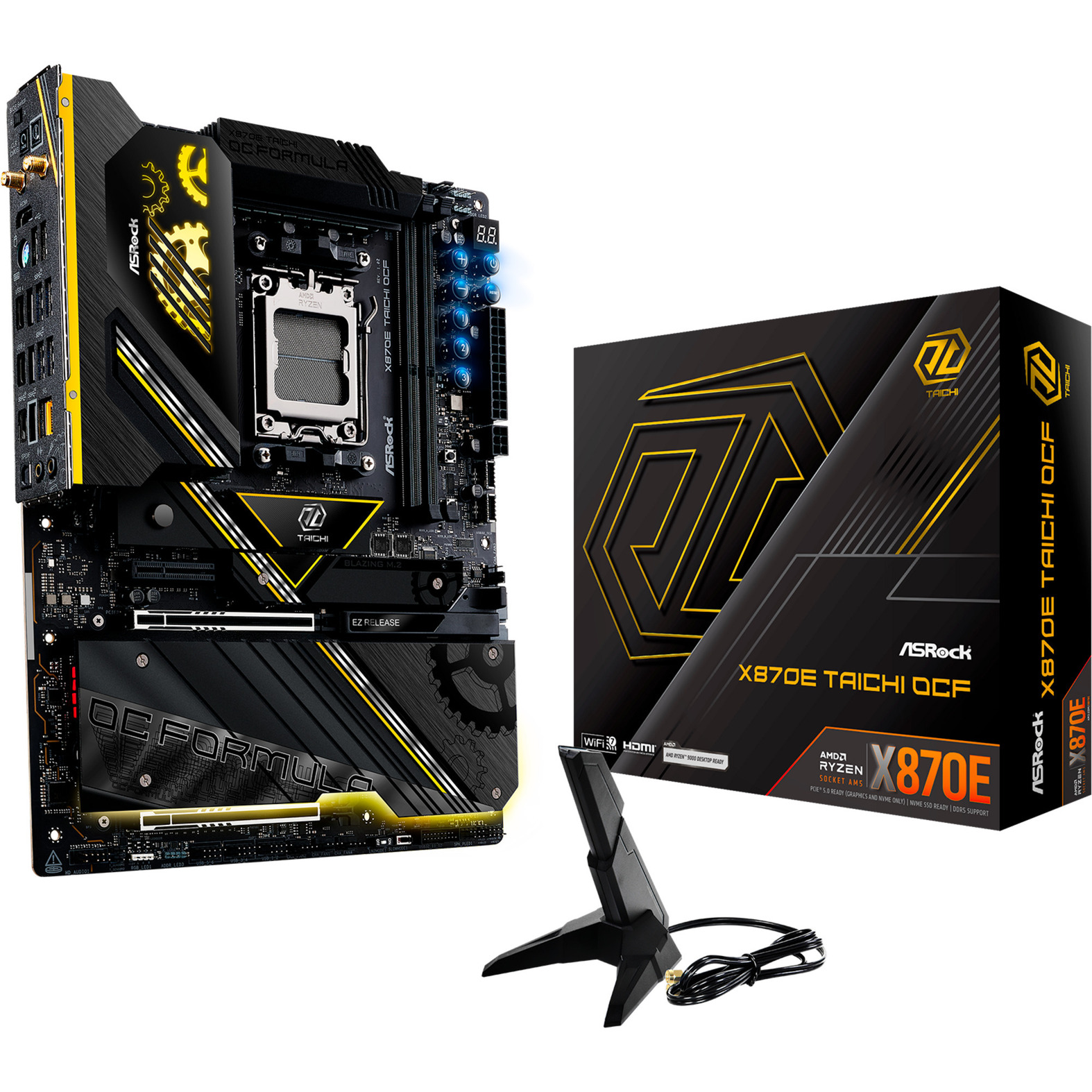 L’ASRock X870E Taichi OCF est basé sur le chipset AMD-X870E et supporte les processeurs AMD pour le socket AM5. Il dispose de quatre slots DDR5 pouvant accueillir jusqu’à 256 Go de mémoire vive. Les autres caractéristiques de l’ASRock X870E Taichi OCF incluent un slot PCIe 5.0-x16, un slot PCIe 5.0-x8 et un slot PCIe 4.0-x4. De plus, l’ASRock X870E Taichi OCF dispose d’un son 8 canaux, d’une interface LAN 5 Gigabit, du WiFi 7, du Bluetooth 5.4, de deux ports SATA3, de six ports M.2 et d’une série d’interfaces USB.
