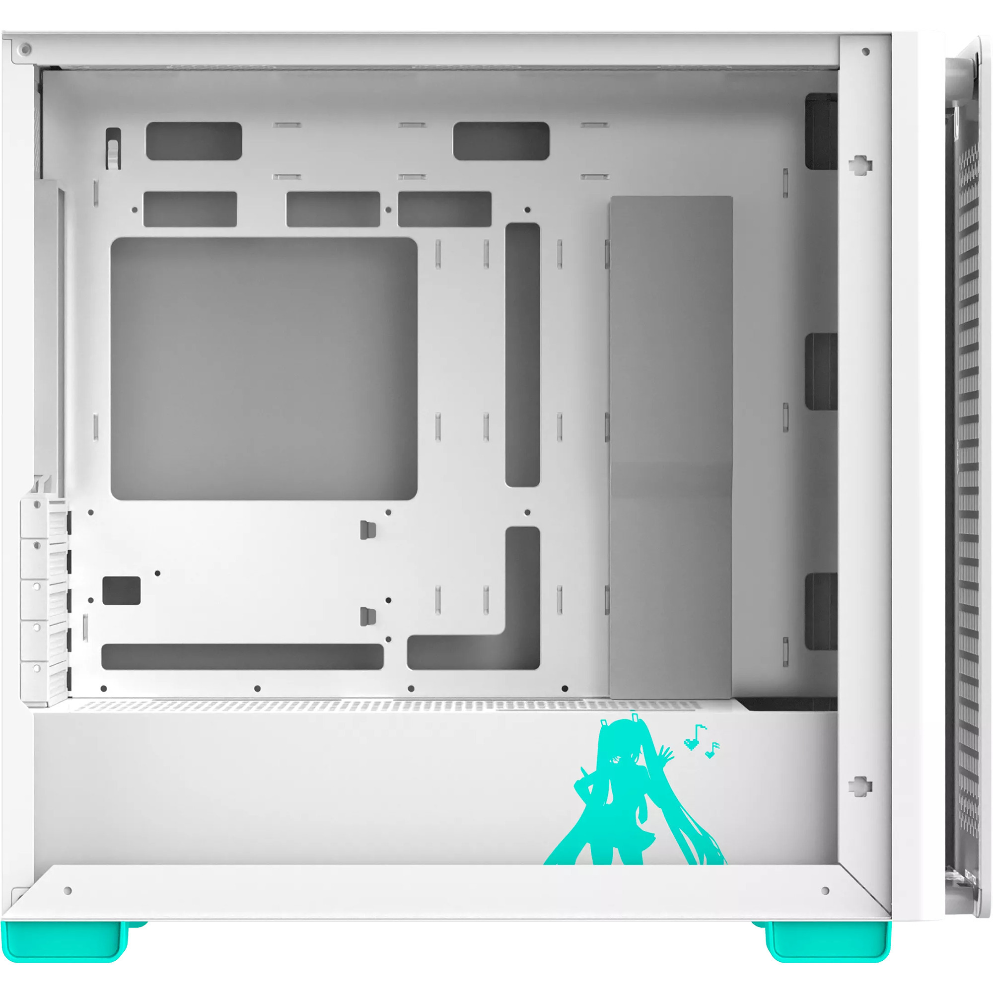 L’ASUS A23 Hatsune Miku Edition est un boîtier PC conçu pour des PC minimalistes grand public et de type DIY. Il prend en charge une large gamme de refroidisseurs AIO et de cartes graphiques, et offre un potentiel de circulation d’air conséquent pour que tout fonctionne sans problème. Suspendre le crochet inspiré de la cravate sur le panneau latéral gauche vous permet de ranger soigneusement votre casque quand vous n’en avez pas besoin. En plus des deux ports USB-A, l’A23 Hatsune Miku Front E/O dispose d’un port USB Type-C® de 10 Gbps idéal pour des vitesses de transfert allant jusqu’à 10 Gbps. Bien que l’A23 Hatsune Miku Edition soit un boîtier Micro-ATX, il supporte des radiateurs jusqu’à 360 mm de diamètre, des cartes graphiques jusqu’à 380 mm de long, et des refroidisseurs CPU jusqu’à 165 mm de haut, offrant aux constructeurs de PC de nombreuses options pour assembler leur prochain PC.