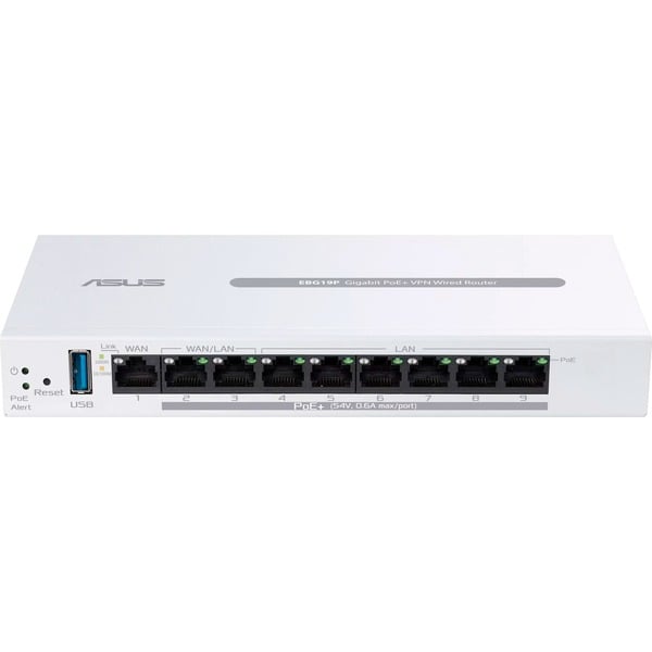 L’ASUS ExpertWiFi EBG19P offre un réseau rapide, sécurisé et évolutif, avec des fonctionnalités étendues conçues pour les petites et moyennes entreprises. L’EBG19P améliore la stabilité du réseau grâce à la connectivité Ethernet et offre une sauvegarde Internet avec deux ports WAN/LAN et un port USB pour soutenir les opérations commerciales. Lorsque votre entreprise se développe, vous pouvez connecter l’EBG19P à un point d’accès pour étendre la couverture et assurer l’évolutivité et l’extensibilité d’ExpertWiFi.