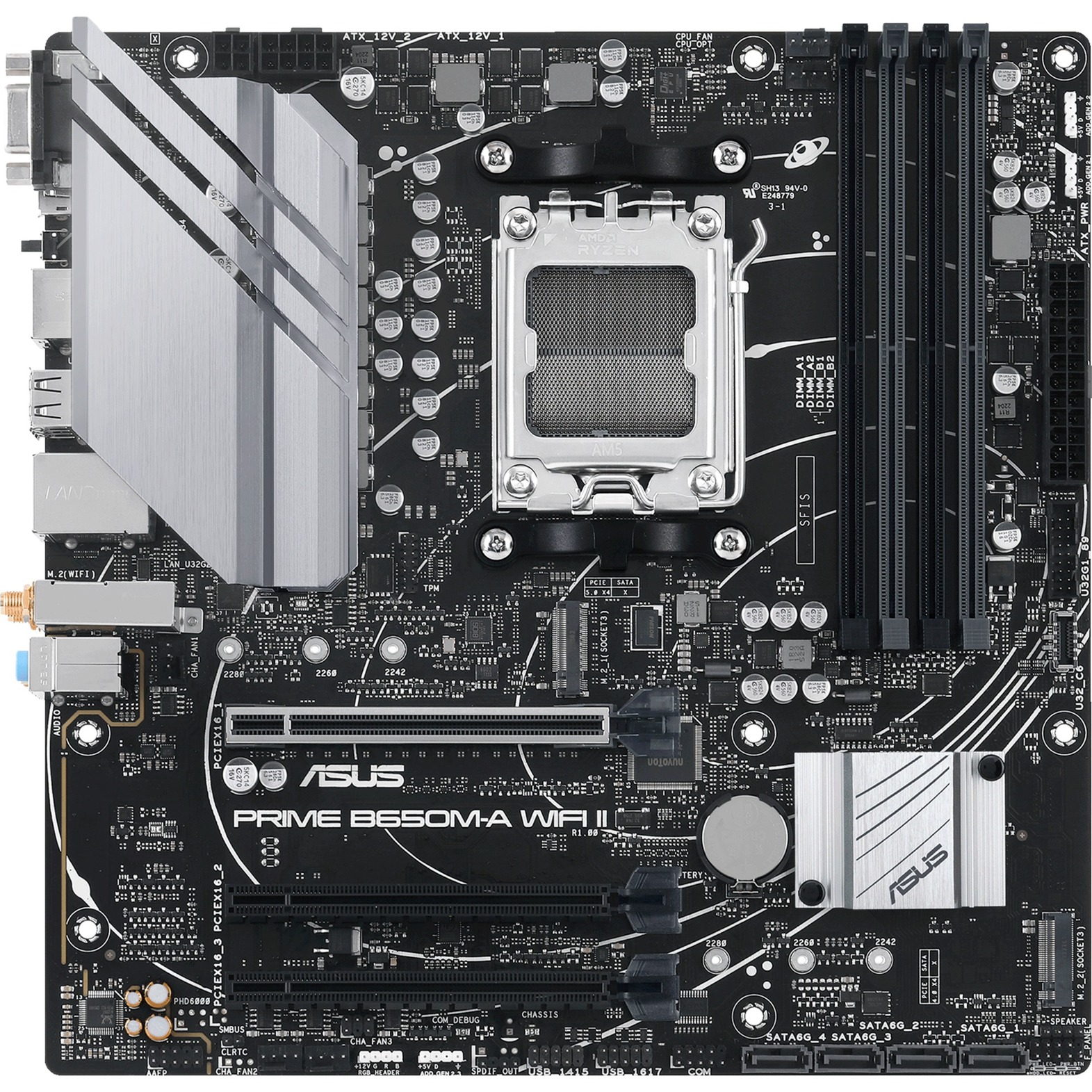 La carte mère ASUS PRIME B650M-A WIFI II s’impose comme une solution polyvalente et pérenne pour accompagner la nouvelle génération de processeurs AMD sur socket AM5. Conçue autour du chipset AMD B650, elle assure une compatibilité étendue avec les processeurs Ryzen 5, 7 et 9 des séries 7000, 8000 et 9000. Son format compact MATX de 244 mm de largeur par 244 mm de profondeur permet une intégration aisée dans la majorité des boîtiers tout en offrant une connectivité moderne.