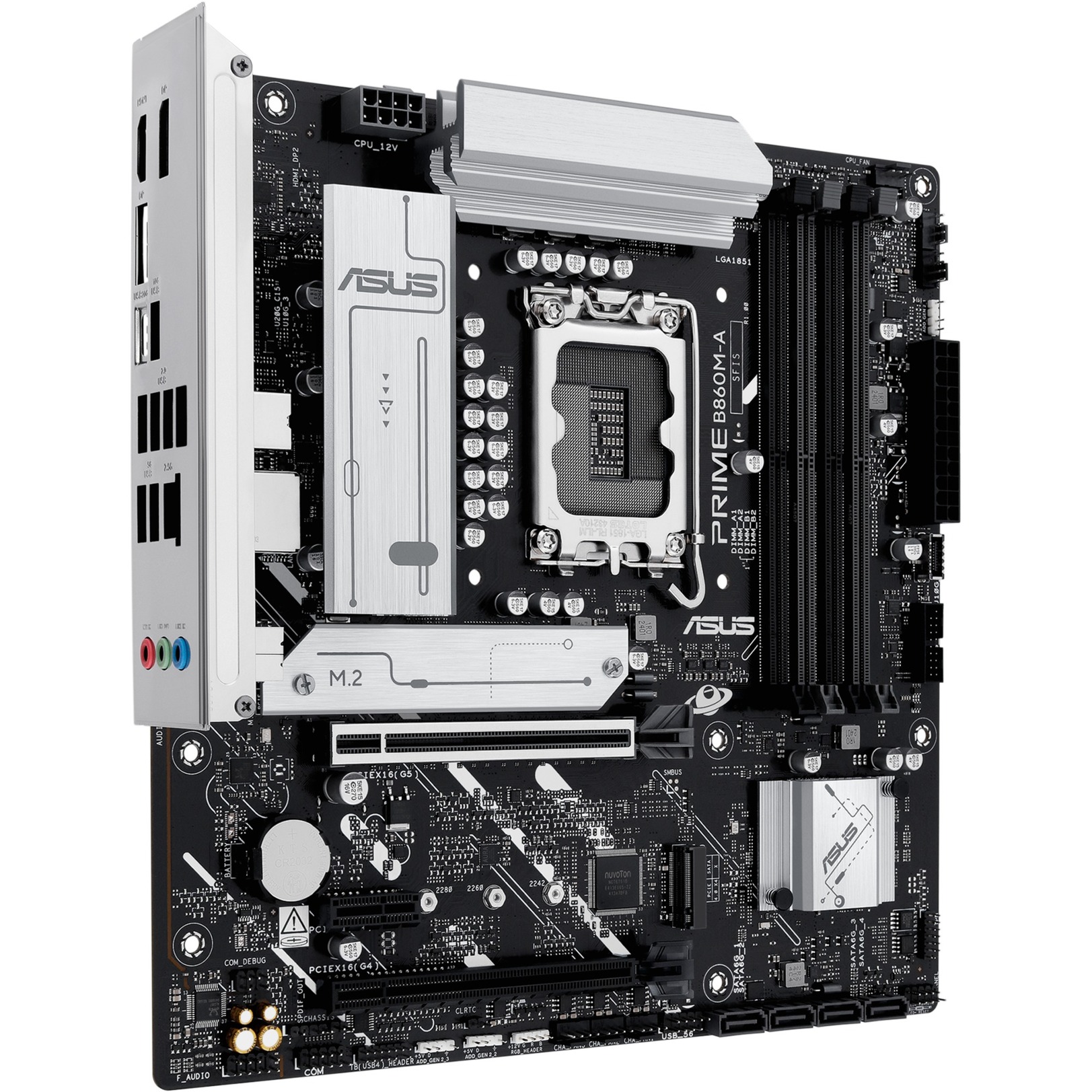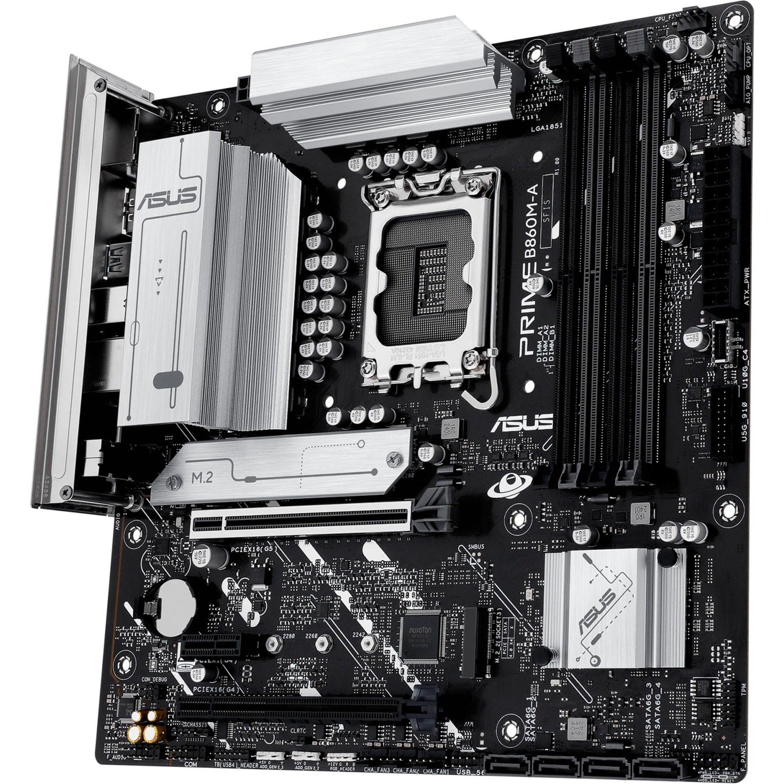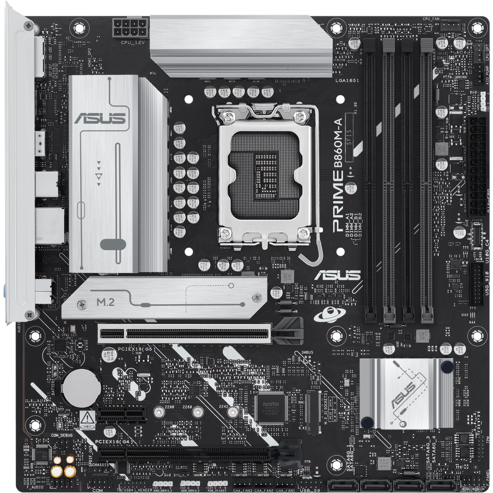 La carte mère ASUS PRIME B860M-A-CSM est basée sur le chipset Intel® B860 et supporte les processeurs Intel® avec un socket 1851. Cette carte mère dispose de quatre emplacements DIMM DDR5 à double canal pouvant accueillir jusqu’à 192 Go de mémoire vive. Les autres caractéristiques incluent deux emplacements PCIe x16 et un emplacement PCIe x1. La carte ASUS PRIME B860M-A-CSM dispose d’un son à 8 canaux, d’une interface LAN 2,5 Gigabit, de quatre ports SATA3, de deux ports M.2, de quatre interfaces USB-A 2.0, de deux interfaces USB-A 3.2 (5 Gbit/s) et d’une interface USB-A 3.2 (10 Gbit/s).