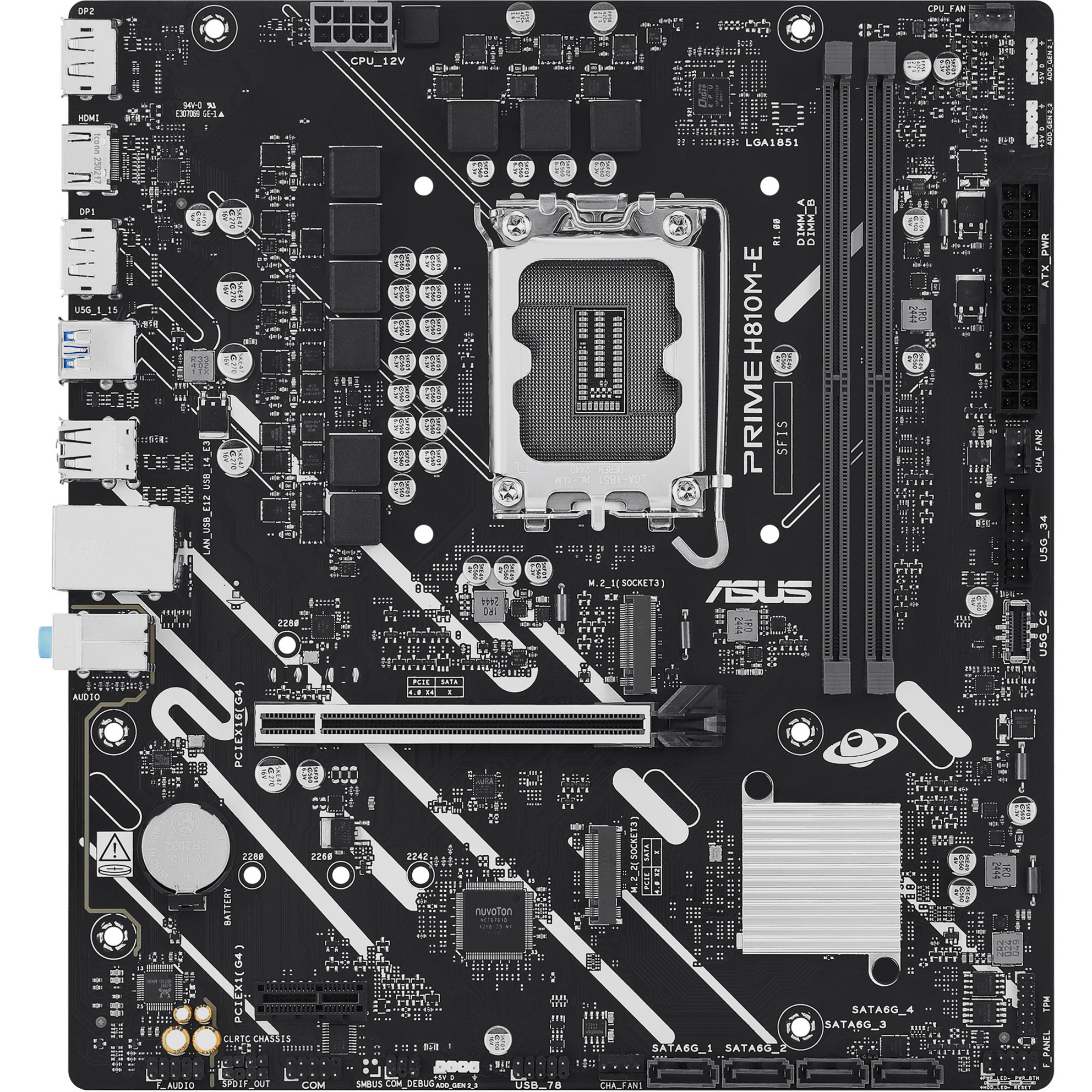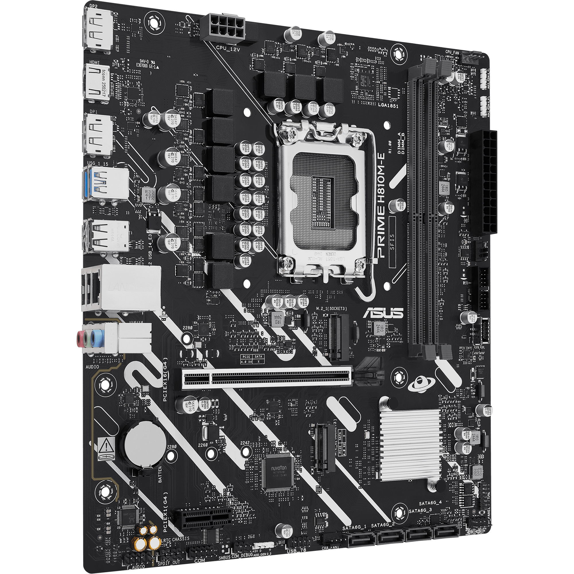 L’ASUS PRIME H810M-E-CSM est basé sur le chipset Intel® H810 et prend en charge les processeurs Intel® pour socket 1851. Il dispose de deux emplacements DDR5 pouvant accueillir jusqu’à 128 Go de RAM. L’ASUS PRIME H810M-E-CSM possède également un emplacement PCIe 4.0 x16 et un slot PCIe 4.0 x1. De plus, l’ASUS PRIME H810M-E-CSM propose un son 8 canaux, une interface LAN Gigabit, quatre ports SATA3, deux ports M.2 et une gamme de ports USB.