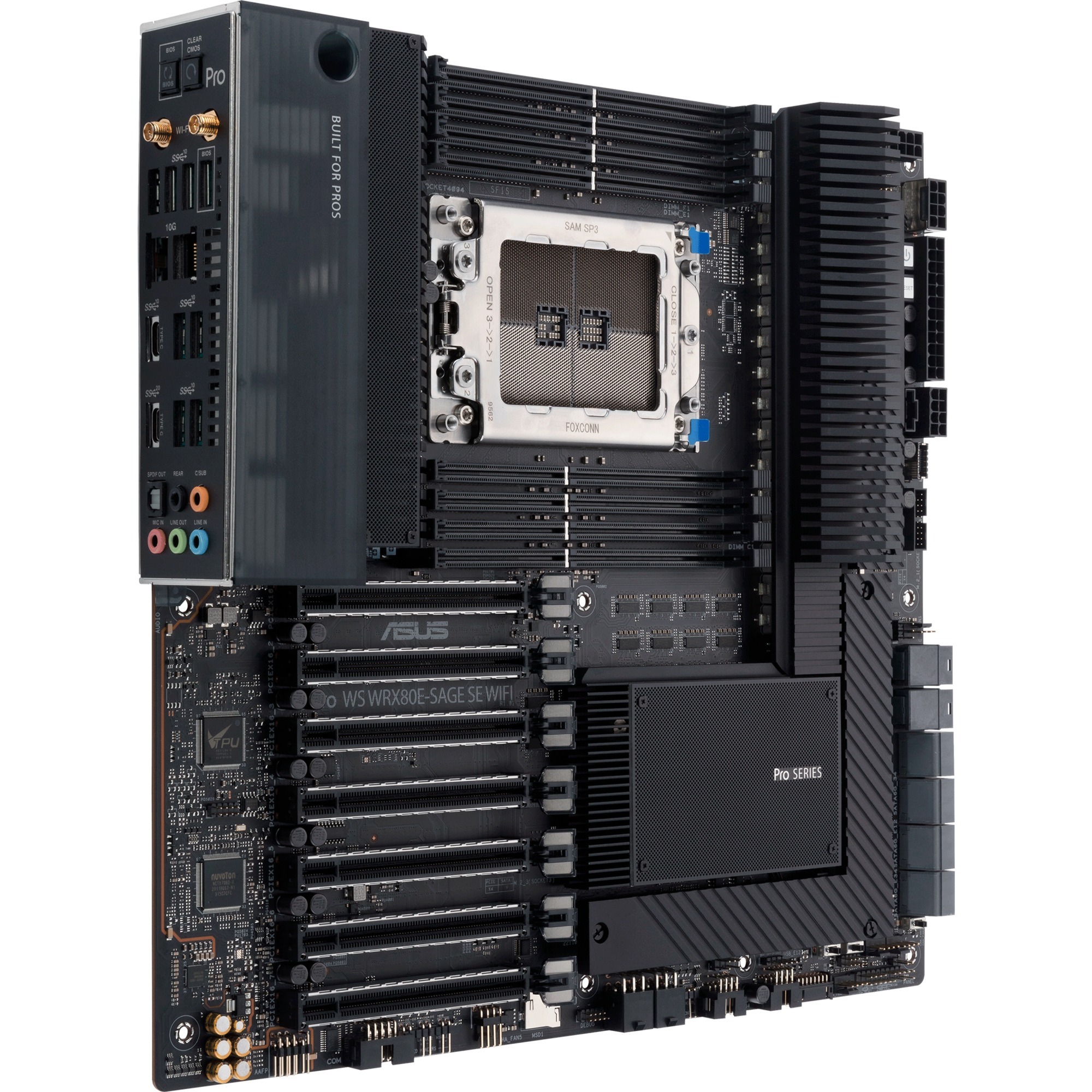 L’ASUS PRO WS WRX80E-SAGE SE WIFI II est basée sur le chipset AMD WRX80 et supporte les processeurs AMD avec socket sWRX8. Elle dispose de huit emplacements DDR4 permettant d’accueillir jusqu’à 2 To de mémoire vive en mode huit canaux. Les autres caractéristiques de l’ASUS PRO WS WRX80E-SAGE SE WIFI II comprennent sept emplacements PCIe 4.0 x16. En outre, l’ASUS PRO WS WRX80E-SAGE SE WIFI II dispose d’un son à huit canaux, de deux interfaces LAN 10 Gigabit ainsi que de huit ports SATA3, de trois ports M.2, du Wi-Fi 6E, du Bluetooth 5.1 et d’un certain nombre d’interfaces USB.