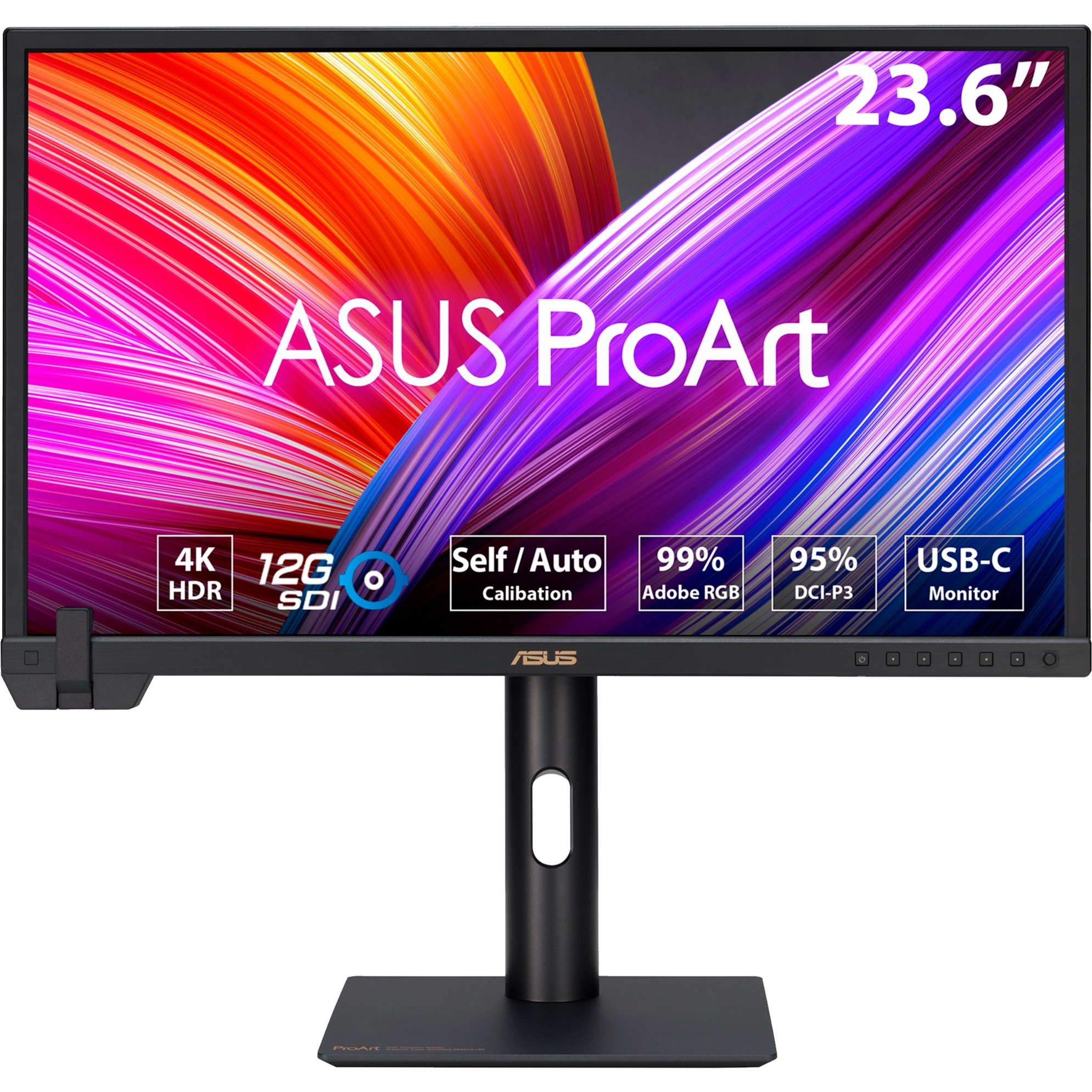 Le ProArt PA24US est un moniteur LED de haute qualité pour les utilisateurs professionnels travaillant dans les domaines de la création de contenu, du montage vidéo et du traitement d’images numériques. Le ProArt PA24US offre une résolution 4K UHD (3840 x 2160 pixels) avec technologie HDR10 et IPS sur une diagonale de 59,94 cm (23,6 »). L’écran fonctionne avec une profondeur de couleur de 10 bits avec une couverture de 95 % DCI-P3 et 99 % de l’espace colorimétrique Adobe. Ce moniteur est livré calibré en usine pour la plus haute fidélité des couleurs – en outre, il y a un auto-étalonnage de l’appareil via un colorimètre rétractable intégré dans le boîtier. Cette fonction est accessible directement depuis le menu du moniteur, fonctionne sans logiciel supplémentaire et est donc indépendante du système d’exploitation. Le PA24US répond également aux exigences professionnelles en matière de connexions : en plus de 2x HDMI et DisplayPort ainsi que 2x USB-A et USB-C avec 80 watts de Power Delivery, il y a une entrée 12G-SDI qui permet la connexion directe d’une carte de capture SDI PCIe – avec une qualité 4K sans compression et donc sans perte de qualité.