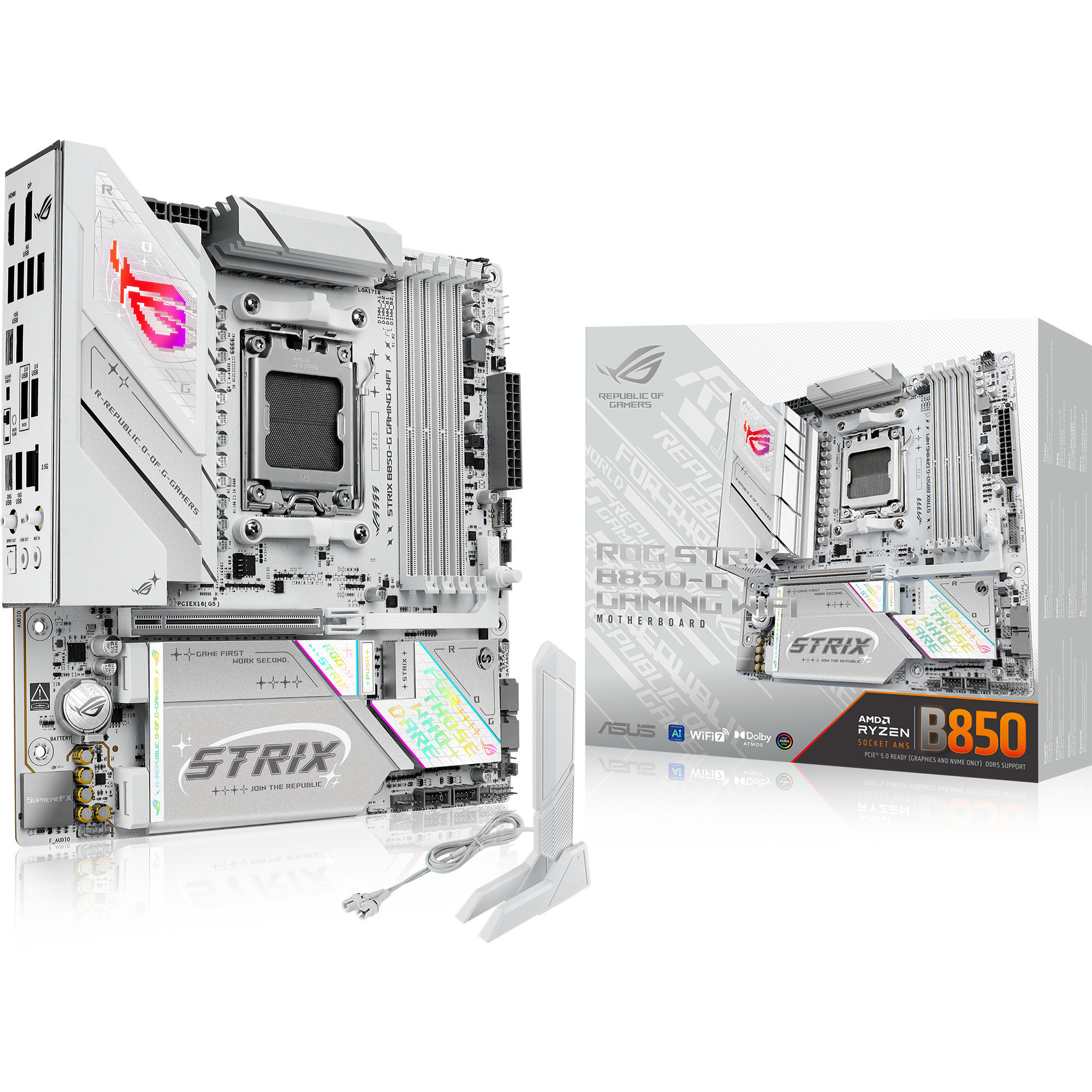 L’ASUS ROG STRIX B850-G GAMING WIFI est basé sur le chipset AMD B850 et prend en charge les processeurs AMD pour socket AM5. Elle dispose de quatre emplacements DDR5 pour un maximum de 256 Go de RAM. L’ASUS ROG STRIX B850-G GAMING WIFI dispose également d’un slot PCIe 5.0 x16 et d’un slot PCIe 4.0 x16. De plus, l’ASUS ROG STRIX B850-G GAMING WIFI dispose d’un son à 8 canaux, d’une interface LAN 2,5 Gigabit, du WiFi 7, du Bluetooth 5.4, de deux ports SATA3, de quatre ports M.2 et d’une gamme de ports USB.
