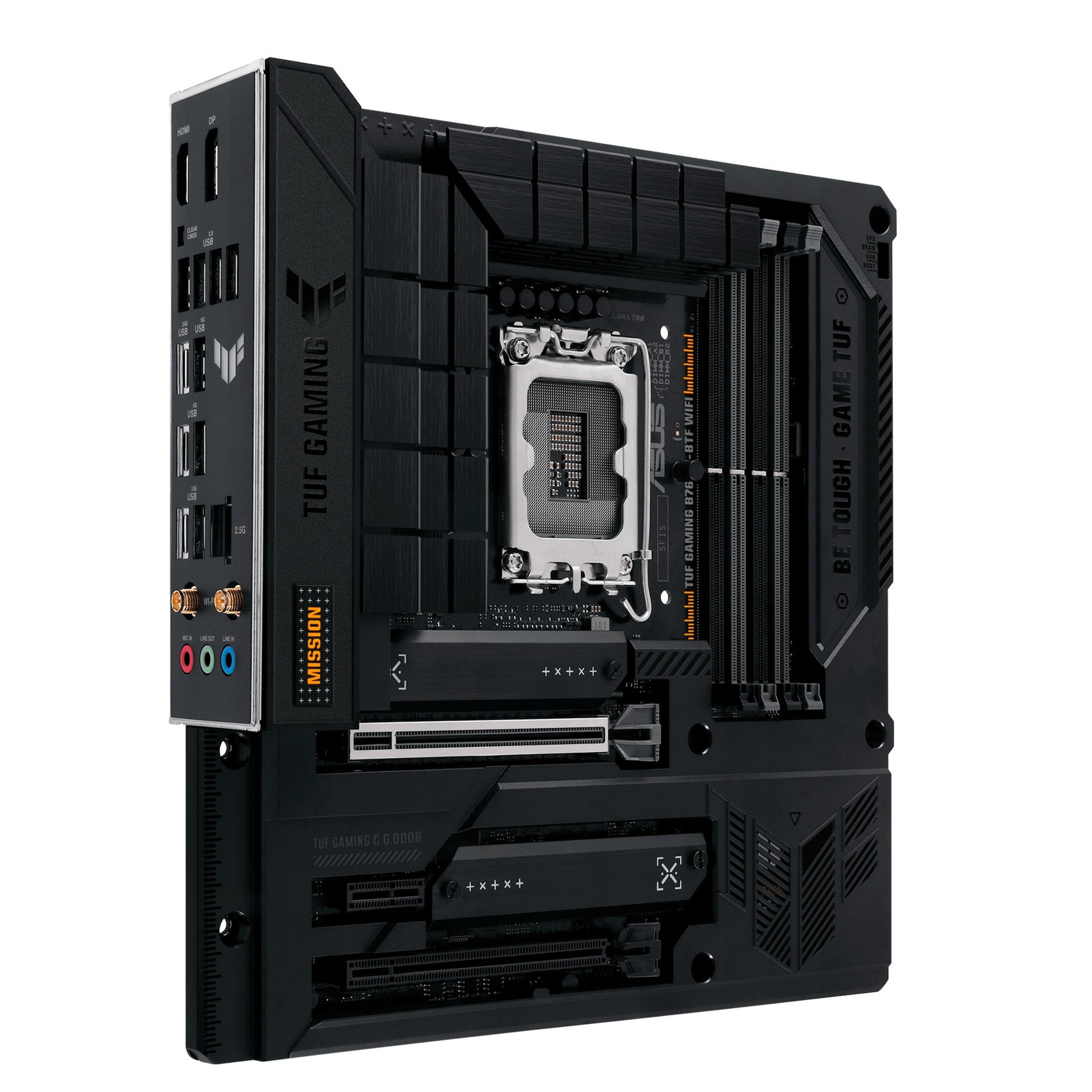 La carte mère ASUS TUF GAMING B760M-BTF WIFI est basée sur le chipset Intel B760 et prend en charge les processeurs Intel® pour Socket 1700 de 13e et 12e génération. Elle dispose de quatre emplacements DIMM DDR5 en mode double canal pour jusqu’à 192 Go de RAM. Les autres caractéristiques de la TUF GAMING B760M-BTF WIFI incluent un slot PCIe 5.0 x16 et un slot PCIe 4.0 x16. De plus, la TUF GAMING B760M-BTF WIFI dispose d’une interface LAN 2,5 Gigabit, de quatre ports SATA3, de trois ports M.2 (chacun prenant en charge PCIe 4.0 x4), du Wi-Fi et d’un certain nombre de ports USB.