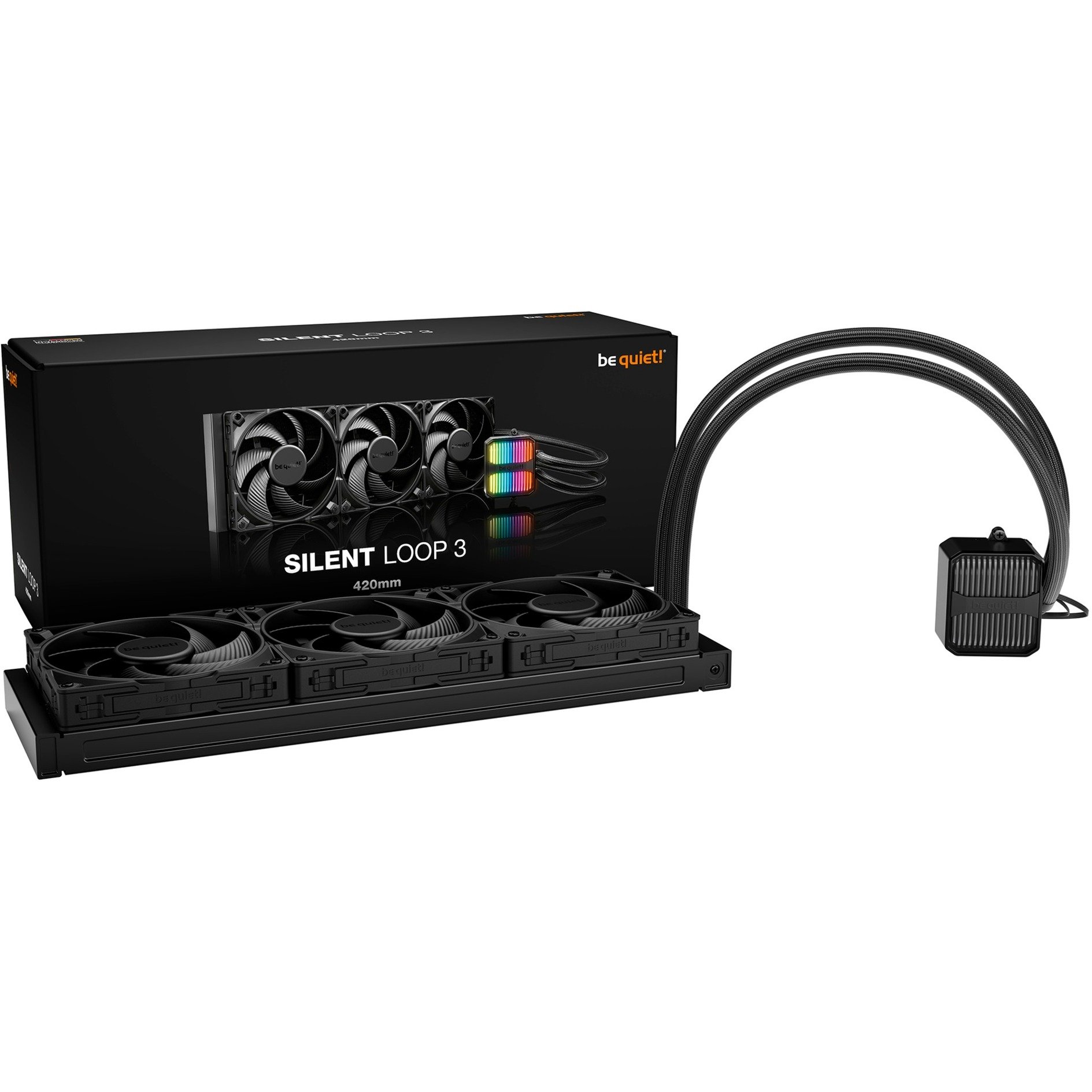 Le be quiet! Silent Loop 3 420mm se positionne comme une solution de refroidissement liquide haut de gamme, conçue pour répondre aux exigences des configurations les plus puissantes. Ce kit se distingue par sa pompe amortie et réglable, équipée d’un moteur à six pôles qui assure un fonctionnement à la fois extrêmement puissant et particulièrement discret. Avec une vitesse de rotation de la pompe atteignant 3 500 Tr/min, ce système fermé garantit une circulation optimale du liquide pour maintenir vos composants à des températures idéales, même lors de sessions intensives.