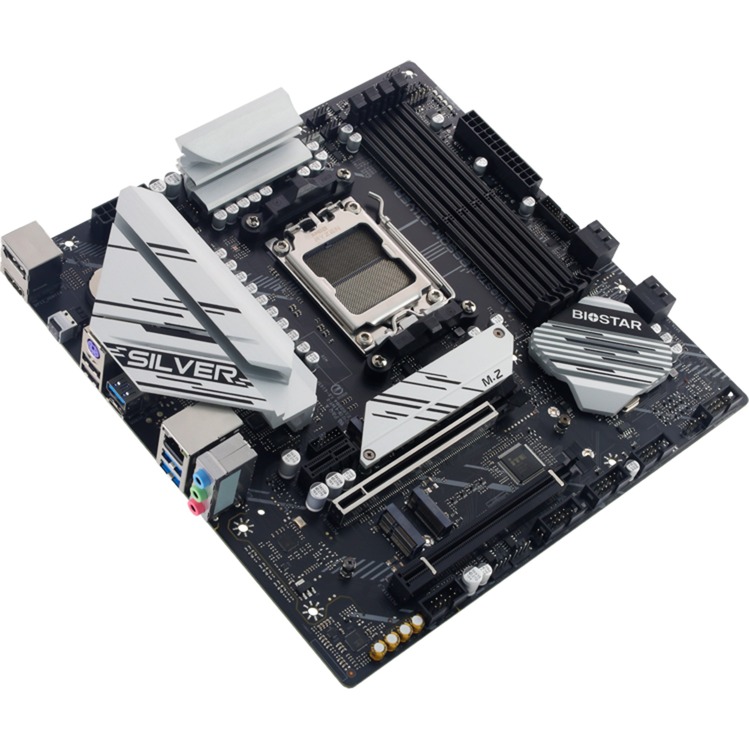 Le Biostar B650M-SILVER est basé sur le chipset AMD B650 et prend en charge les processeurs AMD pour socket AM5. Il dispose de quatre emplacements DDR5 pour jusqu’à 128 Go de mémoire. Le Biostar B650M-SILVER dispose également de deux emplacements PCIe 4.0 x16 et d’un emplacement PCIe 3.0 x1. En outre, le Biostar B650M-SILVER dispose d’un son à 8 canaux, d’une interface LAN 2,5 Gigabit, de quatre ports SATA3, de deux ports M.2 et d’un certain nombre d’interfaces USB.