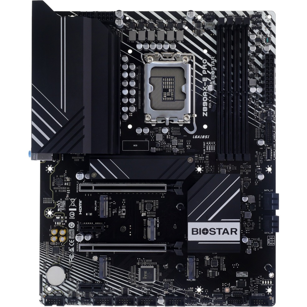 Le Biostar Z890AX-E Pro est basé sur le chipset Intel® Z890 et prend en charge les processeurs Intel® pour socket 1851. Il dispose de quatre emplacements DDR5 pour un maximum de 256 Go de RAM. Les autres caractéristiques de la Biostar Z890AX-E Pro comprennent un emplacement PCIe 5.0 x16, un emplacement PCIe 4.0 x16 (x4 voies) et deux emplacements PCIe 3.0 x1. De plus, la Biostar Z890AX-E Pro dispose d’un son à 8 canaux, d’une interface LAN 2,5 Gigabit, de quatre ports SATA3, de quatre ports M.2 et d’une gamme de ports USB.