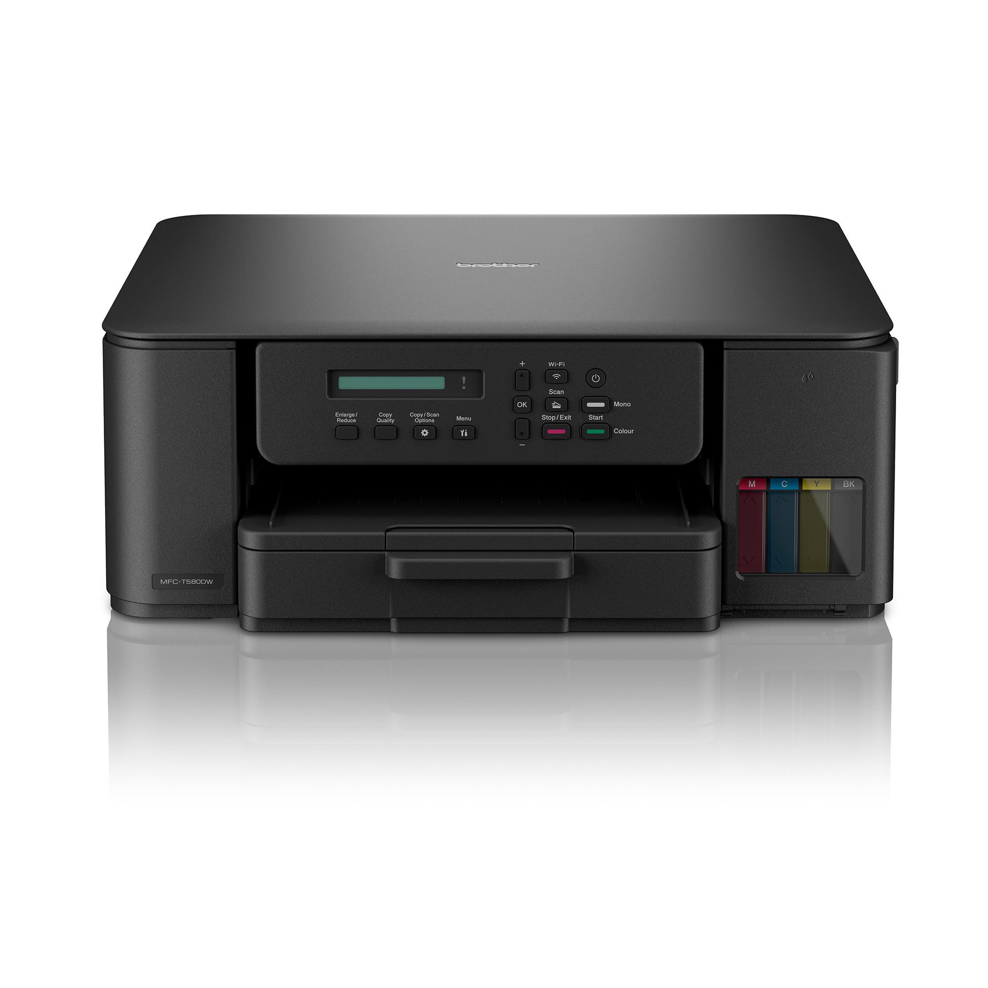 La DCP-T580DW de Brother allie une impression efficace à une facilité d’utilisation. Cette imprimante tout-en-un à jet d’encre n’utilise plus de cartouches d’encre classiques pour l’impression : à la place, l’encre est versée dans le réservoir, ce qui réduit le coût des consommables et augmente la portée. Les réservoirs peuvent être remplis en quelques secondes – sans avoir à tenir la bouteille. La livraison comprend déjà de l’encre pour jusqu’à 7500 pages (noir) et jusqu’à 5000 pages (couleur). En plus de la fonction d’impression, le DCP-T580DW offre un scanner à plat et une fonction de copie. Il dispose d’interfaces pour l’impression directe WLAN et Wi-Fi et peut donc être facilement utilisé à partir de divers appareils mobiles.