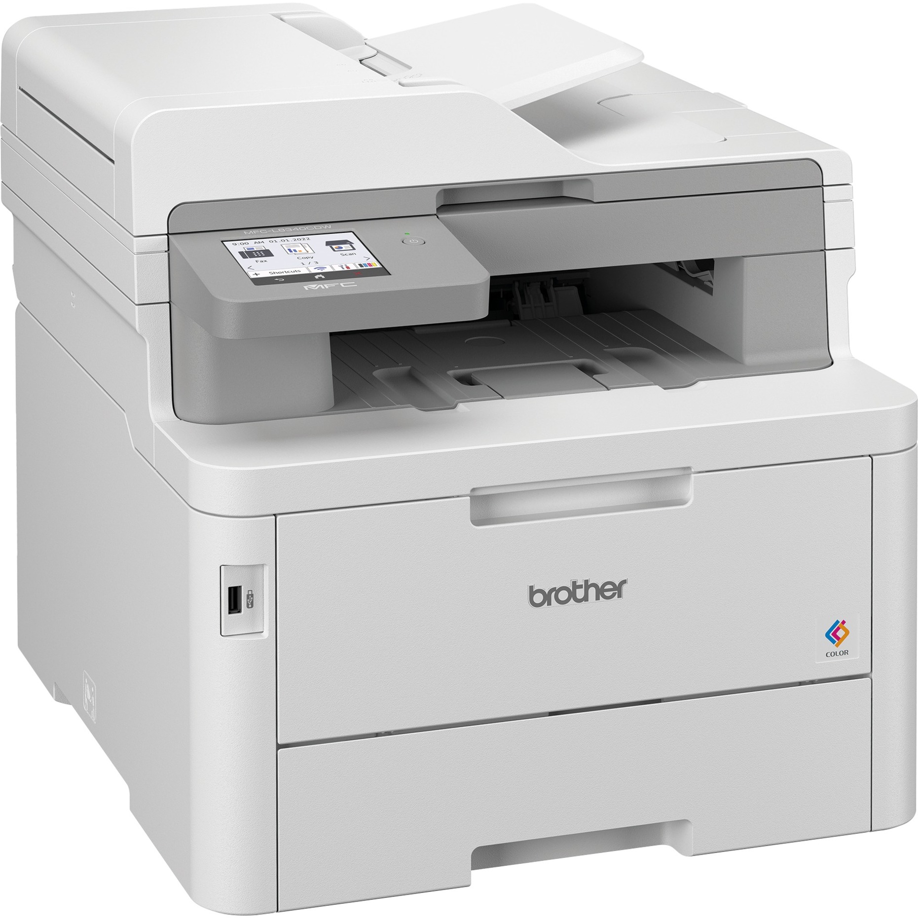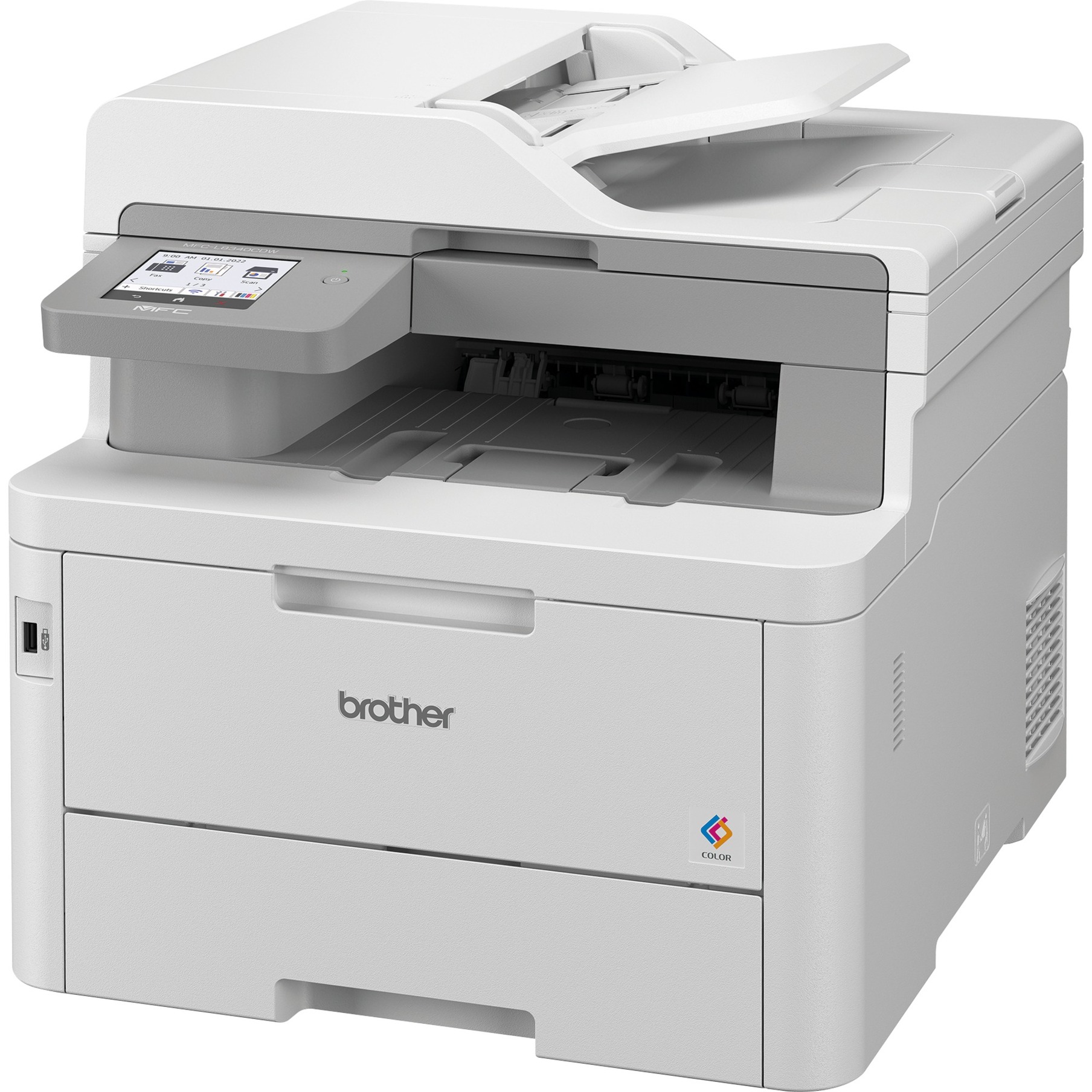 Le MFC-L8340CDW imprime jusqu’à 30 pages par minute en couleur ou en noir et blanc et offre des fonctionnalités complètes pour les petits groupes de travail ou le bureau à domicile. En plus d’une fonction de numérisation et de copie avec un bac de 50 feuilles sur le dessus, cette imprimante multifonction dotée d’une technologie LED avancée offre également une interface de télécopie. Il peut être mis en réseau via LAN ou Wi-Fi et prend en charge l’impression directe WiFi pour une impression directe facile à partir d’appareils mobiles exécutant iOS ou Android. De plus, il y a un port USB à l’avant, ce qui permet l’impression directe de clés USB. Le recto verso automatique facilite l’impression recto-verso, ce qui permet d’économiser du papier. Un écran tactile couleur à l’avant facilite l’utilisation de l’appareil.