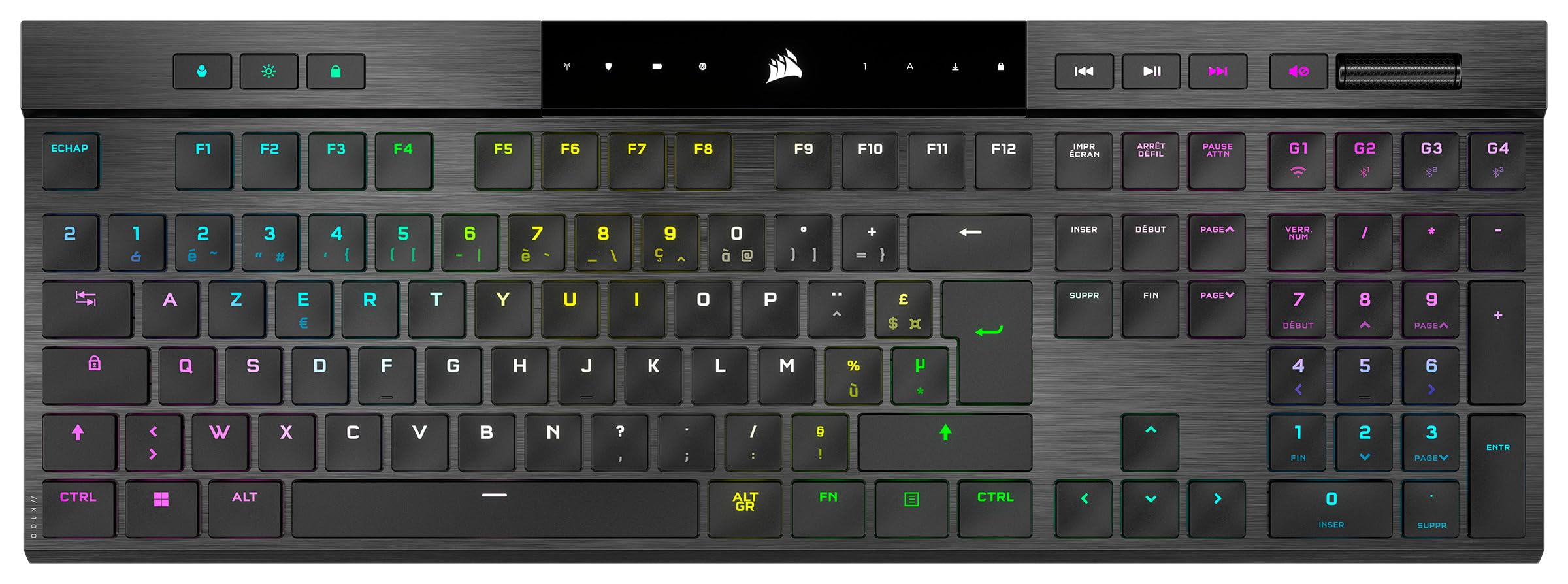 Le Corsair K100 AIR s’impose comme une référence dans le segment des claviers mécaniques sans fil haut de gamme. Son design ultra-mince, avec une épaisseur de seulement 17 mm, et son poids contenu de 780 g, en font un périphérique à la fois élégant et portable, idéal pour les espaces de travail épurés.