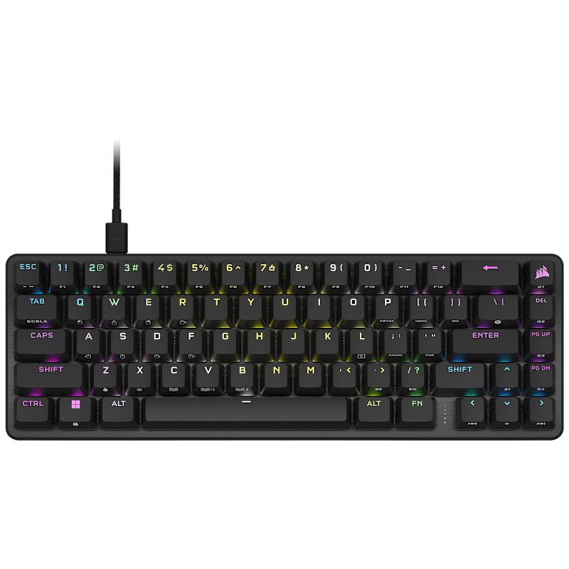 Réactivité exceptionnelle avec un polling rate de 8000 Hz et des switches optiques CORSAIR OPX — Format compact 65% idéal pour gagner de l’espace et la portabilité — Construction de qualité avec des keycaps PBT double-shot et un câble tressé — Personnalisation poussée grâce à la mémoire intégrée et aux nombreux profils — Éclairage RGB vivant et anti-ghosting NKRO pour une expérience de jeu sans compromis