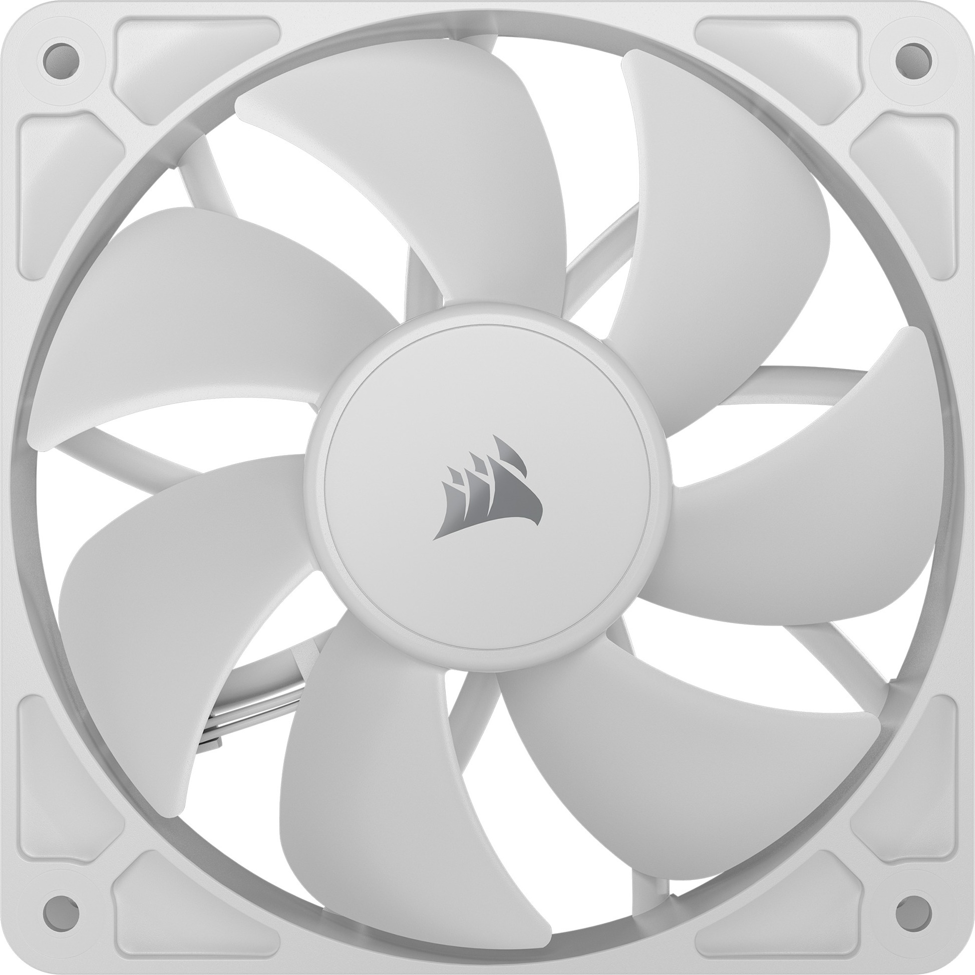 Le ventilateur blanc Corsair RS120 120 mm PWM permet d’étendre facilement le système de refroidissement existant. Grâce à ses connecteurs PWM 4 broches Daisy-chain, d’autres ventilateurs RS peuvent être ajoutés et tous contrôlés via un seul connecteur PWM 4 broches sur la carte mère. Le ventilateur offre des vitesses allant jusqu’à 2100 RPM et une pression statique, il peut donc également être utilisé comme radiateur. La technologie Corsair AirGuide avec des ailettes anti-vortex dirige le flux d’air pour un refroidissement concentré et puissant. Les roulements à dôme magnétique garantissent un fonctionnement plus silencieux et une durée de vie plus longue, tandis que le mode Zero RPM permet un fonctionnement silencieux à faible charge.