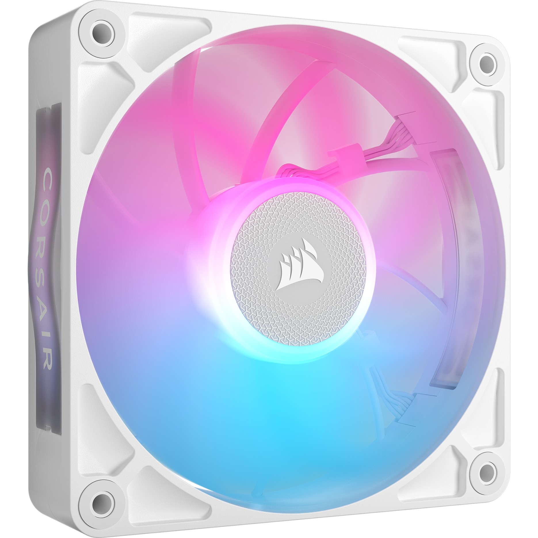 Le Corsair RX120 MAX RGB est un ventilateur blanc conçu pour étendre l’écosystème iCUE LINK. D’une épaisseur de 30 mm pour des dimensions de 120 mm sur 120 mm, il combine un flux d’air important et une pression statique élevée, le tout pilotable via une connexion PWM à 4 broches.