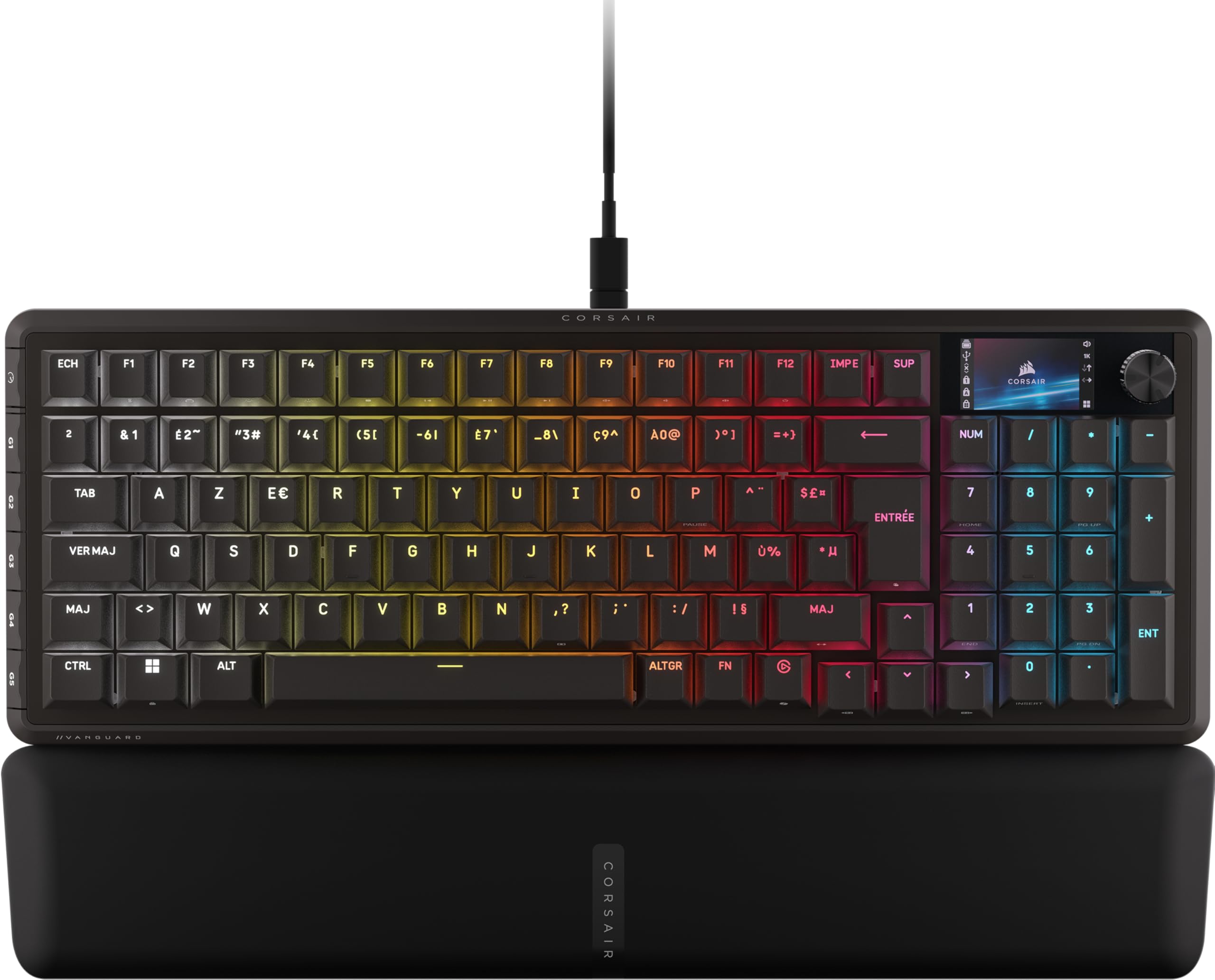 Le Corsair VANGUARD PRO 96 Hall Effect se positionne comme un outil de haute précision pour les joueurs exigeants. Ce clavier mécanique magnétique adopte un format de 96%, intégrant 100 touches dans un châssis compact de 375 × 140 × 38 mm. Cette conception intelligente vous permet de bénéficier d’un pavé numérique complet tout en optimisant l’espace sur votre bureau pour vos mouvements de souris.