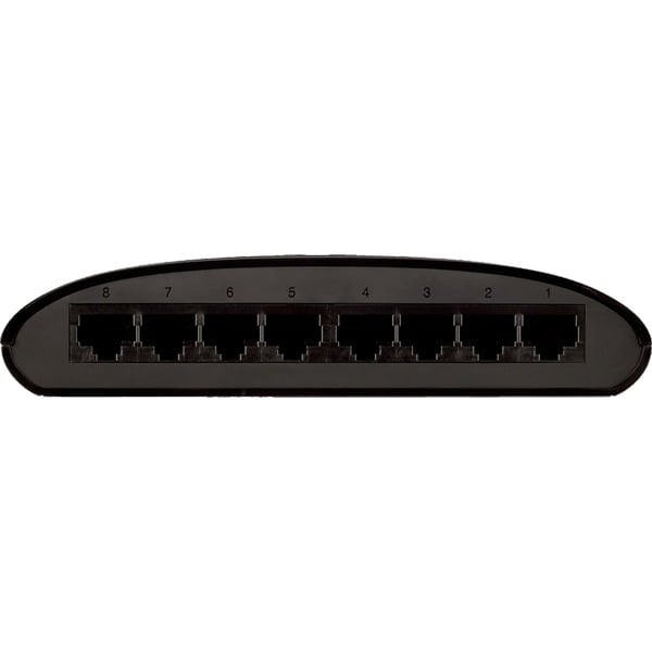 Ce switch compact a été spécialement conçu pour les environnements SoHo. Il offre huit ports 10/100 MBit pour les postes de travail ou les serveurs. Des hubs peuvent également être connectés à ce switch. Tous les ports Twisted-Pair détectent automatiquement le débit de transmission (10 MBit/s ou 100 MBit) des ordinateurs ou des hubs connectés. Ces ports distinguent également automatiquement entre le mode Full-Duplex et Half-Duplex, et prennent en charge le Flow-Control.