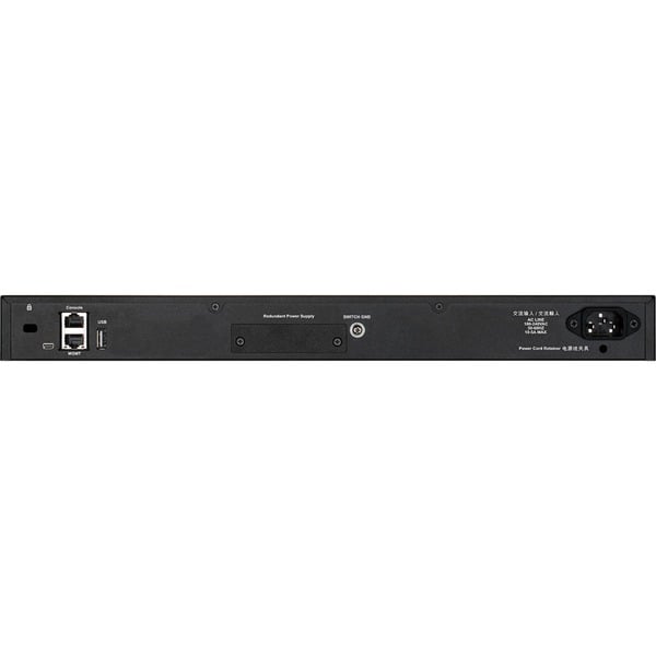 Côté conception, ce switch affiche un format rackable avec une largeur de 440 mm, une hauteur de 44 mm et une profondeur de 290 mm, pour un poids total de 5,1 kg. Il supporte également le stacking physique, une fonctionnalité essentielle pour augmenter la densité de ports de votre installation tout en simplifiant la gestion administrative de votre parc réseau. Une interface USB-A 2.0 est également intégrée pour faciliter les opérations de maintenance.