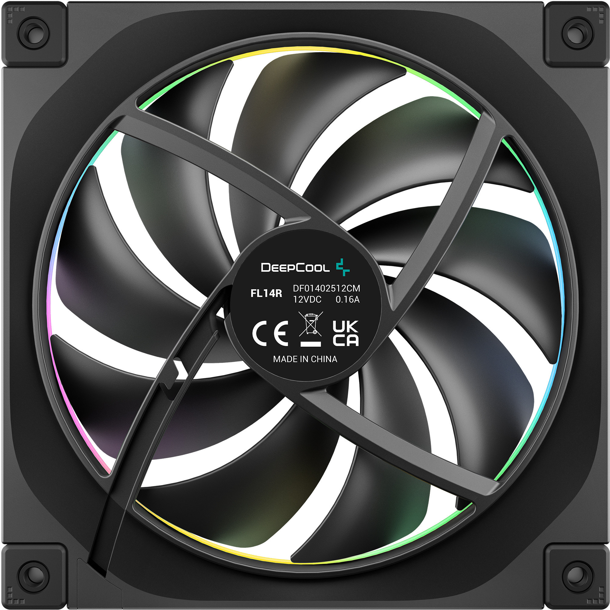 Le FL14R de Deepcool combine des effets d’éclairage uniques avec des performances élevées, un faible bruit et une excellente qualité. Le design optimisé pour la lumière avec 42 sources lumineuses ARGB Gen2 entoure le cadre et offre une lumière vive qui éclaire efficacement l’intérieur du PC. Ce ventilateur de boîtier PWM offre un refroidissement fiable avec une vitesse de rotation de 500 à 1700 tours par minute, tout en restant agréablement silencieux. Les vibrations sont absorbées par des tampons en caoutchouc à chaque coin.