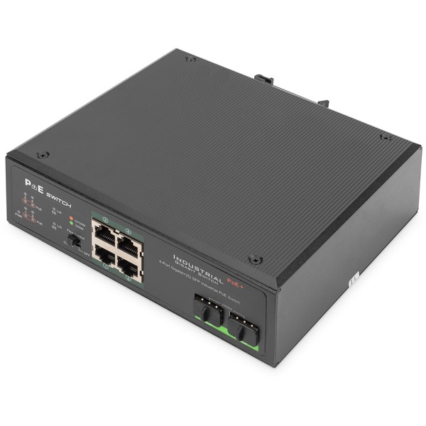 Digitus Commutateur industriel Gigabit PoE+ 4 ports avec 2 ports de liaison montante SFP