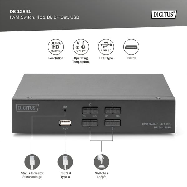 Digitus KVM Switch DispalyPort 4×1