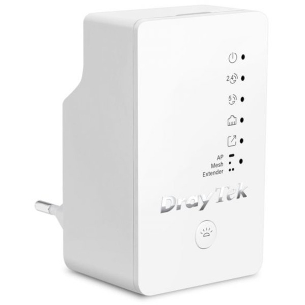 Le VigorAP 802 est un répéteur WLAN Mesh double bande 11ac qui se présente sous la forme d’une prise avec alimentation intégrée et se branche donc directement sur la prise murale. Il a été conçu pour offrir une connectivité sans fil fluide et des fonctionnalités avancées telles que l’AirTime Fairness, le Band Steering et l’AP-Assisted Roaming. Le port LAN Gigabit intégré permet également la connexion d’un périphérique réseau filaire. Connectez le VigorAP 802 à la prise murale et ajoutez-le à un réseau Mesh ou configurez-le comme prolongateur de portée (Range Extender) pour étendre la couverture de votre réseau sans fil. Connectez n’importe quel périphérique réseau Ethernet (filaire), tel qu’un PC ou un commutateur réseau, à un réseau Mesh ou Range Extender via le port Ethernet Gigabit du VigorAP 802, ou utilisez le VigorAP 802 comme point d’accès pour établir une connexion à votre réseau filaire via le port Ethernet Gigabit.