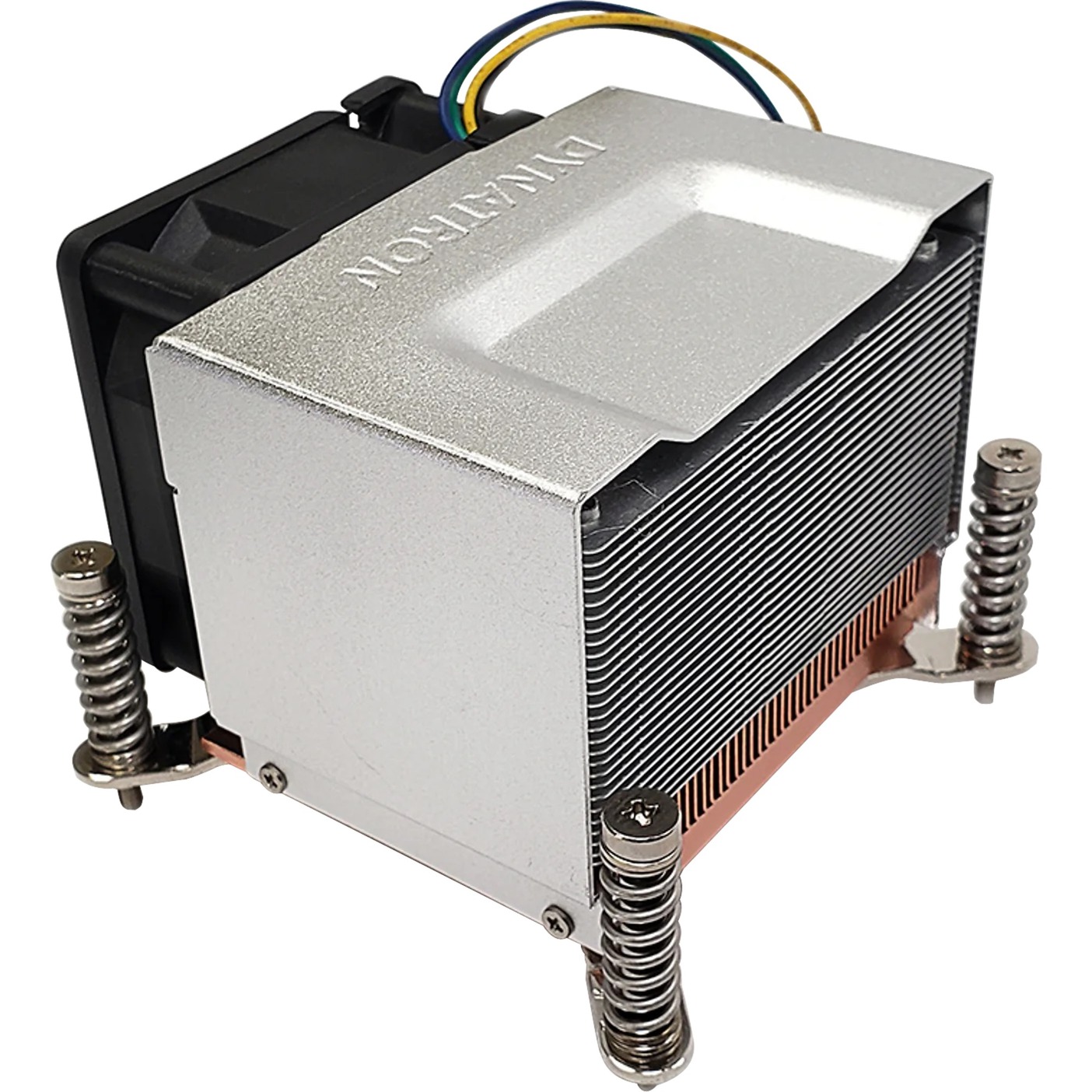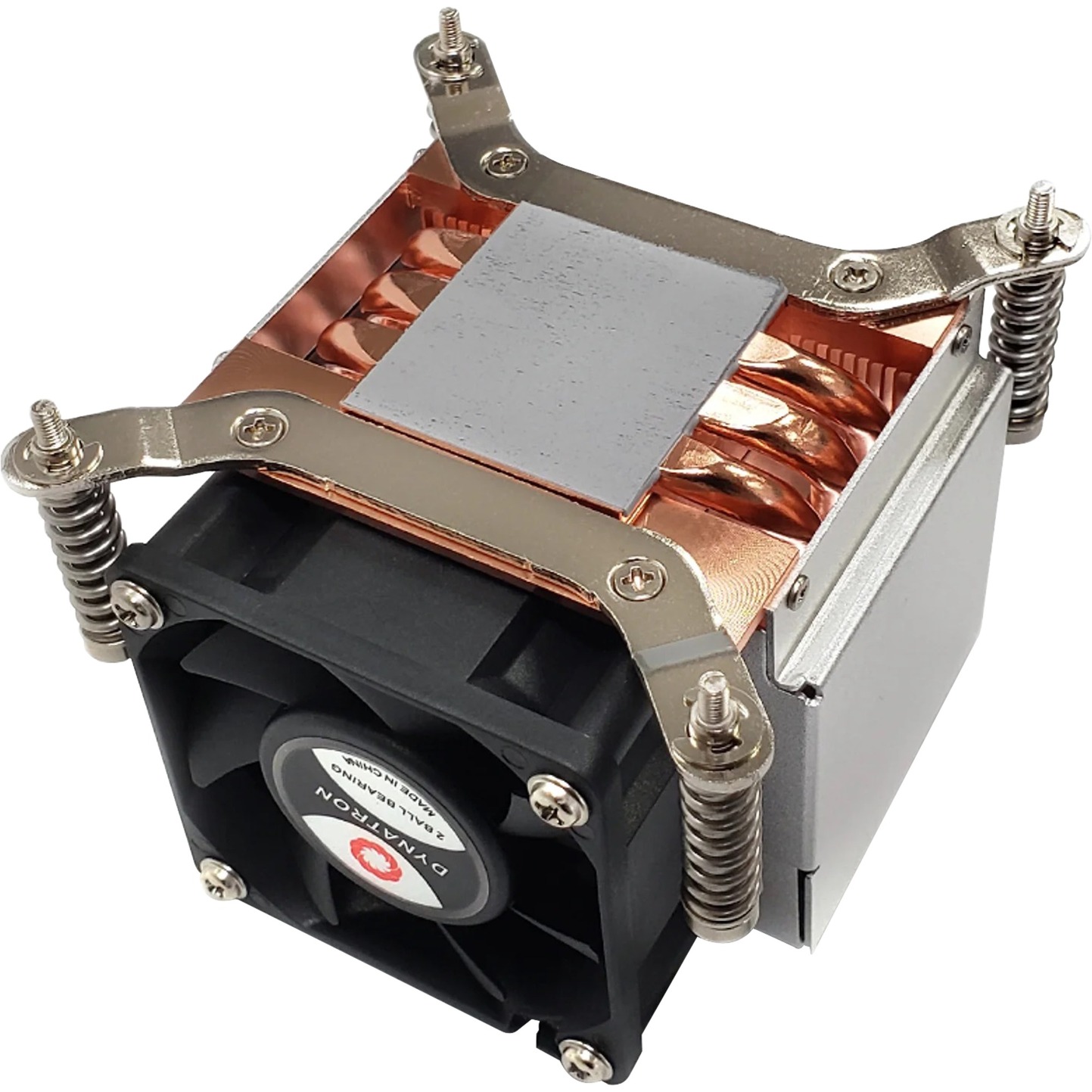 Le Dynatron Q5 est un refroidisseur de processeur pour châssis ou serveurs de bureau ou de station de travail à partir de deux unités de hauteur avec une carte mère Intel® Socket 1700. Il a quatre caloducs en cuivre en forme de U qui se trouvent directement avec la plaque de base, qui conduisent la chaleur dans les ailettes en aluminium, ce qui lui permet de dissiper un maximum de 150 watts de dissipation de puissance. Ceci est soutenu par un ventilateur PWM de 60 mm.