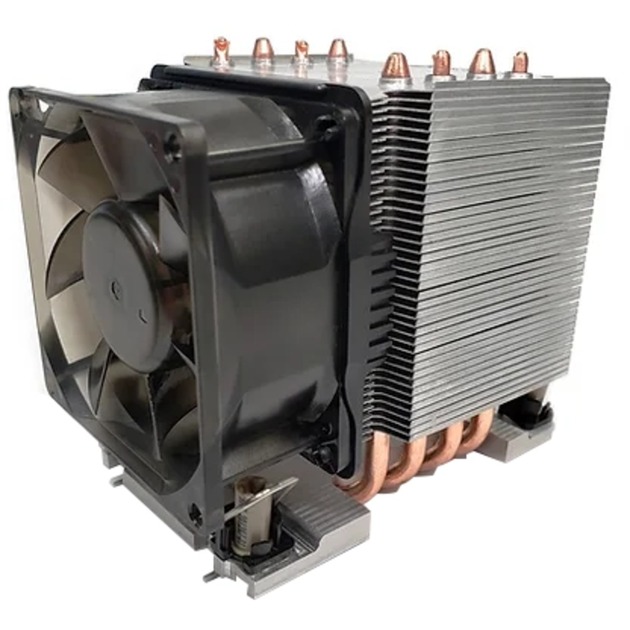 Le Dynatron S6 est un refroidisseur de type « Single Tower » spécifiquement conçu pour accompagner les processeurs Intel Sapphire Rapids sur socket 4677. Adapté aux châssis de serveurs de 3 unités de hauteur, ce modèle actif combine une base en cuivre C1100 et un réseau de 5 caloducs de 6 mm de diamètre pour assurer un transfert thermique efficace vers ses ailettes en aluminium.