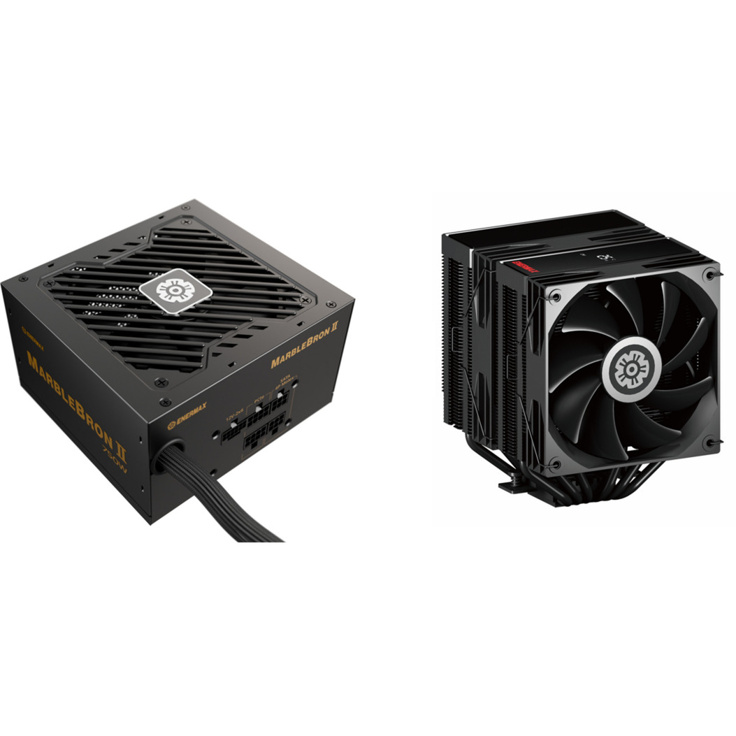 La série MARBLEBRON II est conforme aux normes Intel ATX 3.1, est certifiée 80 PLUS® Bronze, atteint un rendement de 60 % à faible charge et de 88 % à 50 % de charge, et respecte les délais d’alimentation requis. Le ventilateur FDB de 120 mm assure une expérience d’utilisation extrêmement silencieuse. Une conception semi-modulaire avec des câbles flexibles et faciles à installer permet un câblage propre et facile du système PC. La conception à rail unique et DC to DC offre une sortie DC stable et prend en charge les cartes graphiques et les processeurs haut de gamme.Le refroidisseur d’air numérique Enermax ETS-TD60 en version double tour avec 6 caloducs de Ø6 mm et 2 ventilateurs de 120 mm offre des performances de refroidissement solides jusqu’à 280 W TDP. La conception à 9 pales du ventilateur PWM de 120 mm optimise le flux d’air et les performances acoustiques. Le dissipateur thermique compact de 159 mm de haut du refroidisseur d’air numérique ETS-TD60 s’adapte à de nombreux cas courants. Grâce à l’élégant affichage d’état discret, vous pouvez facilement surveiller les températures du CPU, du GPU et de la vitesse du ventilateur.