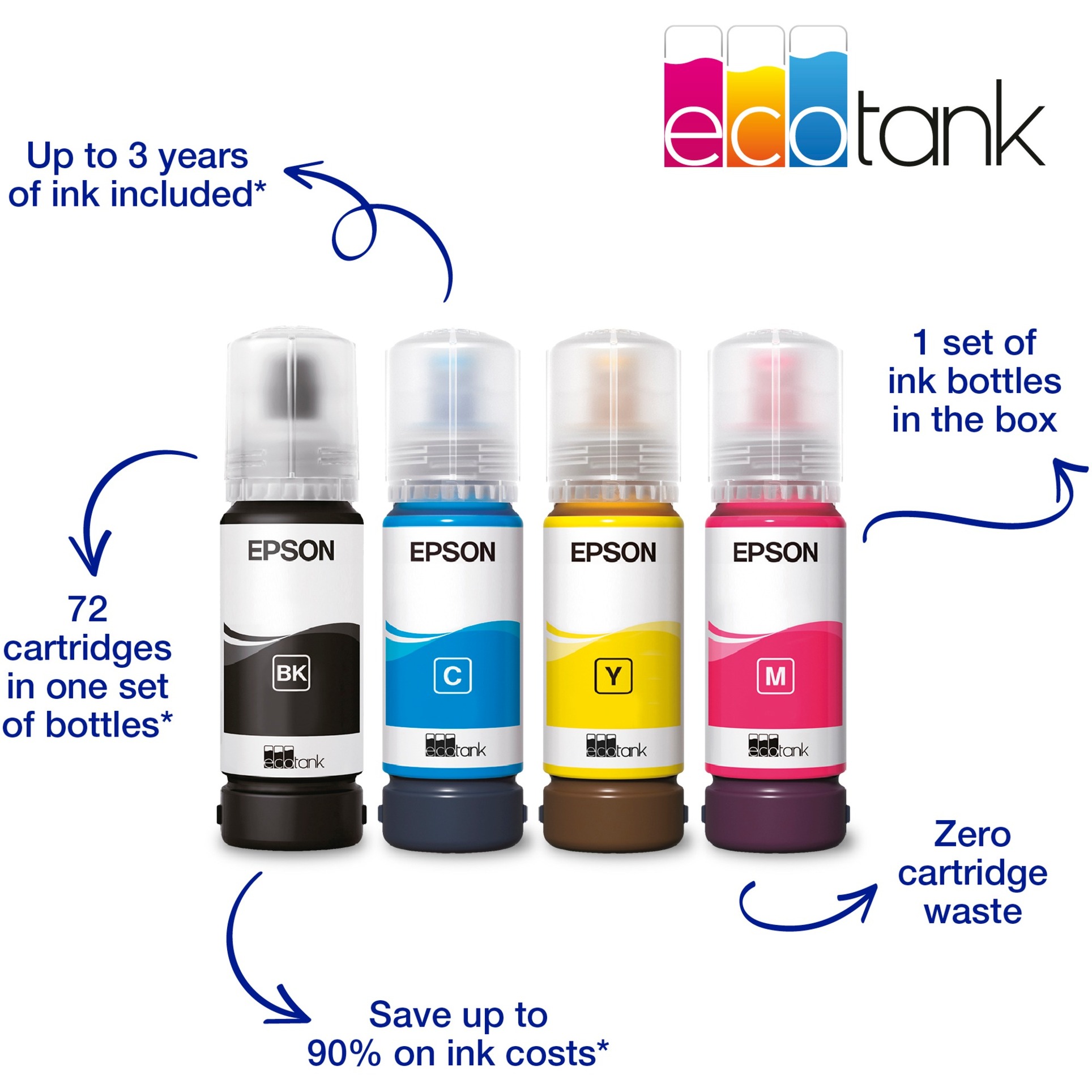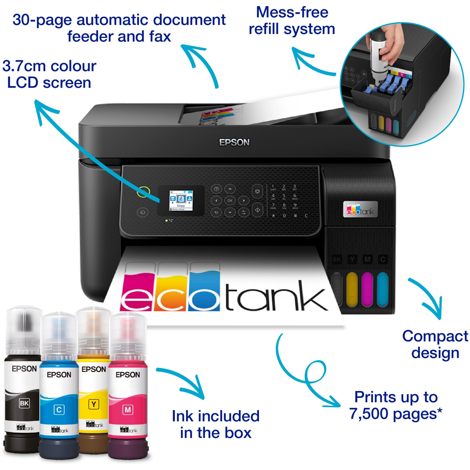 Impression efficace avec encre et multifonction : l’EcoTank ET-4800 repose sur le système de bouteilles d’encre d’Epson, dans lequel aucune cartouche d’encre n’est utilisée, l’encre étant directement remplie dans un réservoir intégré à l’imprimante. Cela réduit les coûts et augmente l’autonomie du système d’impression. L’EcoTank ET-4800 est livré avec des encres permettant d’imprimer jusqu’à 3600 pages en noir (ISO) et 6500 pages en couleur (ISO). Outre la fonction d’impression, il propose un scanner et une unité de copie avec chargeur pouvant accueillir jusqu’à 30 feuilles sur la partie supérieure. Il dispose également d’une fonction fax performante. De plus, il peut être intégré à un réseau via WLAN et LAN. Les appareils mobiles peuvent communiquer avec l’imprimante via Wi-Fi direct. Les utilisateurs gardent une vue d’ensemble grâce à l’écran couleur situé à l’avant.