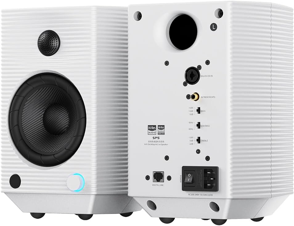 L’élégance rencontre la fonctionnalité avec un châssis en métal moulé sous pression qui non seulement sublime votre setup, mais agit également comme un dissipateur thermique efficace. Cette gestion de la chaleur, cruciale pour maintenir la stabilité des composants comme le serait le TDP pour un processeur, assure une longévité accrue à votre système audio. Pour les amateurs de personnalisation, l’éclairage discret intégré à la base apporte une touche de modernité sans être envahissant. Polyvalentes, ces enceintes s’adaptent à tous vos besoins grâce à une connectique pensée pour la simplicité, faisant de ce modèle le compagnon de choix pour sublimer votre environnement numérique quotidien.