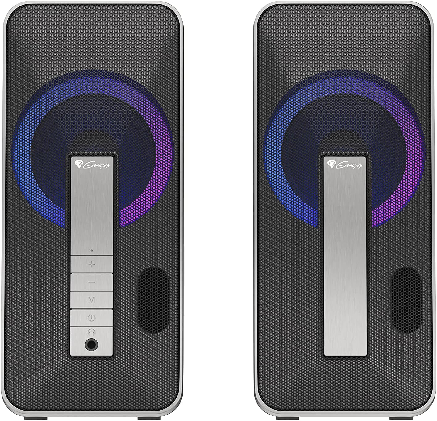 Au-delà de ses performances acoustiques, cet ensemble mise sur une esthétique moderne et soignée. Son châssis noir profond est sublimé par un éclairage ARGB discret mais percutant, que vous pouvez ajuster selon votre humeur ou l’ambiance de votre pièce. Les commandes intuitives situées directement sur l’enceinte facilitent le réglage du volume et des modes d’éclairage, mettant le contrôle total au bout de vos doigts. Les transducteurs de haute qualité sont protégés par une structure robuste, garantissant une longévité accrue même lors d’une utilisation intensive.