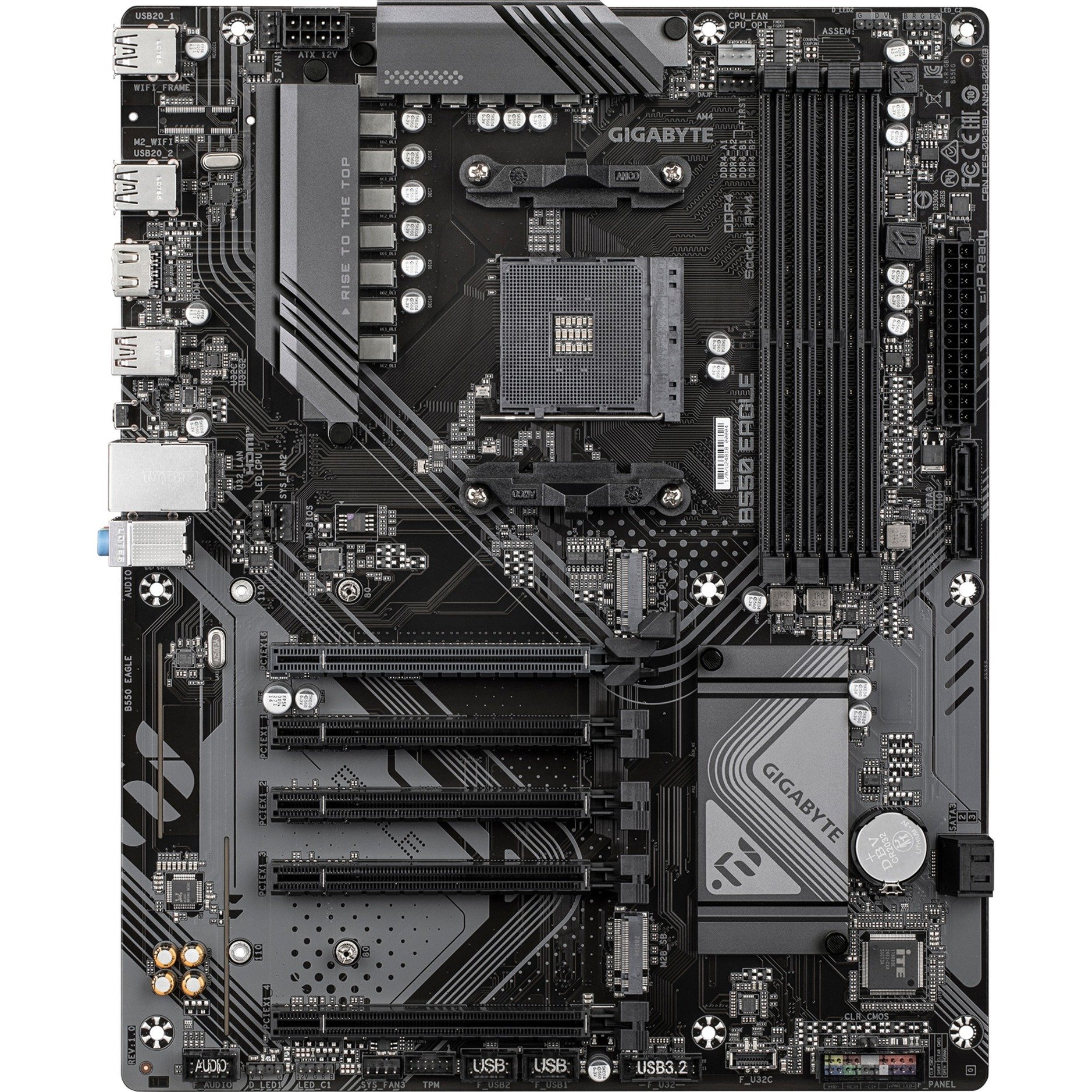 Le GIGABYTE B550 EAGLE est basé sur le chipset AMD B550 et supporte les processeurs AMD pour socket AM4. Il dispose de quatre emplacements DDR4 pour jusqu’à 128 Go de RAM. Les autres caractéristiques du GIGABYTE B550 EAGLE comprennent un emplacement PCIe 4.0 x16 et quatre emplacements PCIe 3.0 x1. De plus, le GIGABYTE B550 EAGLE dispose d’un son à 8 canaux, d’une interface LAN Gigabit, de quatre ports SATA3, de deux ports M.2 et d’une gamme de ports USB.