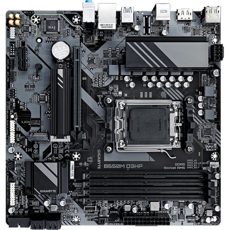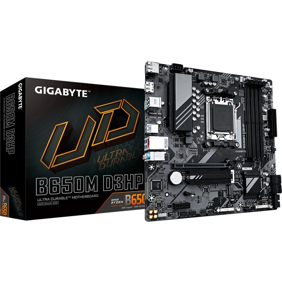 Le GIGABYTE B650M D3HP est basé sur le chipset AMD B650 et supporte les processeurs AMD avec un socket AM5. Il dispose de quatre emplacements DDR5 pouvant accueillir jusqu’à 192 Go de mémoire vive. Le GIGABYTE B650M D3HP est également équipé d’un emplacement PCIe 4.0 x16 et d’un emplacement PCIe 3.0 x1. Le GIGABYTE B650M D3HP dispose également d’un son à 8 canaux, d’une interface LAN 2.5 Gigabit, de quatre ports SATA3, de deux ports M.2 et d’un ensemble de connecteurs USB.