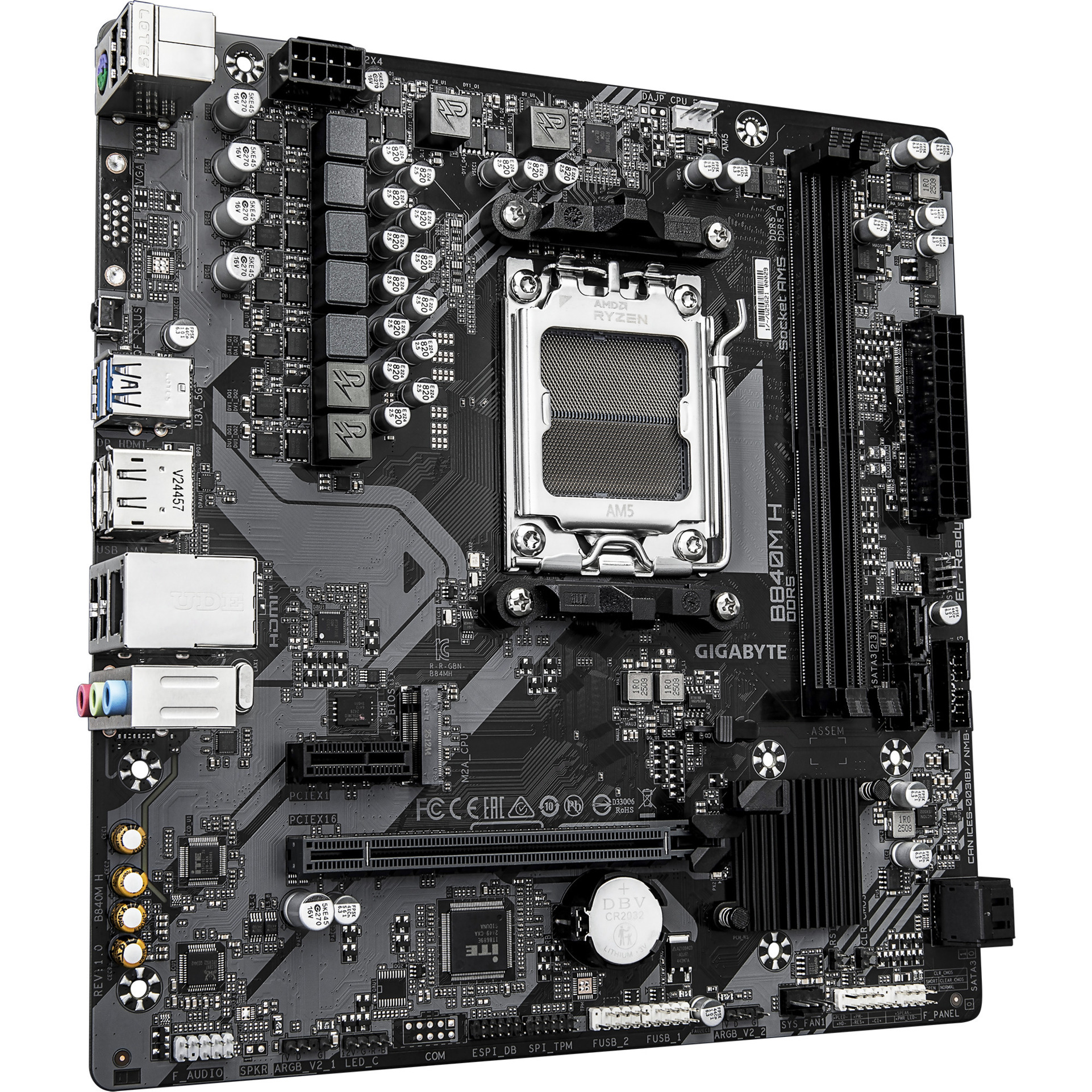 Le GIGABYTE B840M H est basé sur le chipset AMD B840 et supporte les processeurs AMD pour le socket AM5. Il dispose de deux slots DDR5 pouvant accueillir jusqu’à 128 Go de mémoire vive. Le GIGABYTE B840M H est également équipé de 1 slot PCIe 4.0-x16 et d’un slot PCIe 3.0-x1. Le GIGABYTE B840M H dispose également d’un son à 8 canaux, d’une interface LAN Gigabit, de quatre ports SATA3, d’un port M.2 et d’une série d’interfaces USB.