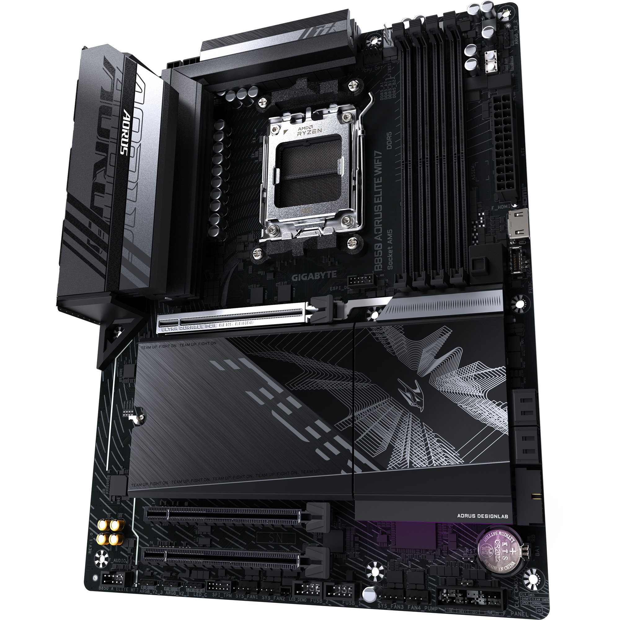 La carte mère GIGABYTE B850 AORUS ELITE WIFI7 est basée sur le chipset AMD B850 et prend en charge les processeurs AMD avec un socket AM5. Cette carte mère dispose de quatre emplacements DIMM DDR5 à double canal pouvant accueillir jusqu’à 256 Go de mémoire vive. Les autres caractéristiques incluent une solution graphique dépendante du CPU, un emplacement PCIe 4.0 x16 et deux emplacements PCIe 4.0 x1. La GIGABYTE B850 AORUS ELITE WIFI7 dispose d’un son à 8 canaux, d’une interface LAN à 2,5 gigabits, du Wi-Fi 7, du Bluetooth, de quatre ports SATA3, de trois ports M.2, de quatre interfaces USB-A 2.0, de cinq interfaces USB-A 3.2 (5 Gbit/s), de trois interfaces USB-A 3.2 (10 Gbit/s) et d’une interface USB-C 3.2 (10 Gbit/s).