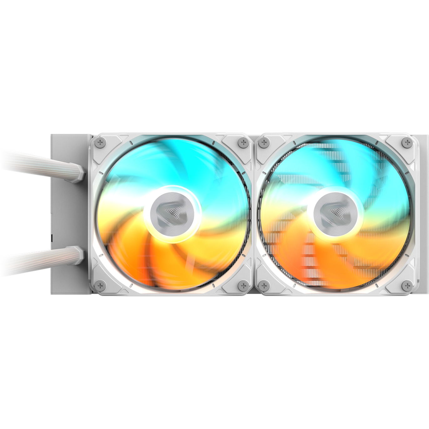 Le système de refroidissement liquide All-in-One GAMING 240 ICE avancé de Gigabyte offre, en plus de performances exceptionnelles, une installation conviviale. Le panneau lumineux de la tête de pompe peut être facilement remplacé et positionné grâce au capot supérieur magnétique. Les ventilateurs EZ-Chain permettent de gagner beaucoup de temps lors du câblage grâce au mécanisme de verrouillage Slide-In et à la connexion DAISY-CHAIN, qui permet la transmission de l’alimentation et des signaux entre les ventilateurs. L’éclairage ARGB des ventilateurs ainsi que celui du waterblock peuvent être synchronisés avec d’autres appareils.
