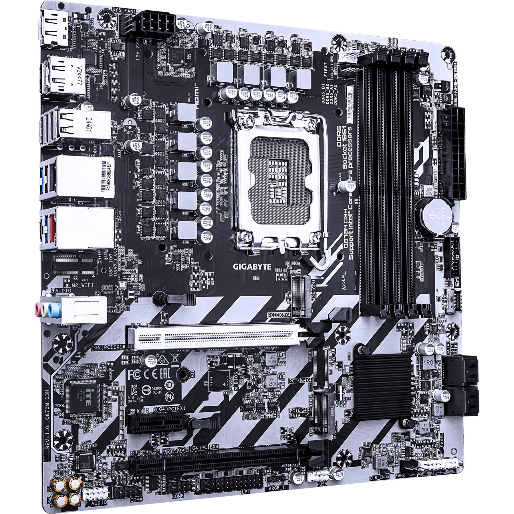 Le GIGABYTE Q870M D3H est basé sur le chipset Intel® Q870 et supporte les processeurs Intel® pour le socket 1851. Il dispose de quatre slots DDR5 pour jusqu’à 256 Go de mémoire vive. Le GIGABYTE Q870M D3H est également équipé d’un slot PCIe 5.0-x16, d’un slot PCIe 4.0-x16 (x4 voies) et d’un slot PCIe 4.0-x1. Le GIGABYTE Q870M D3H dispose également d’un son à 8 canaux, d’une interface LAN Gigabit, de quatre ports SATA3, de deux ports M.2 et d’une série d’interfaces USB.