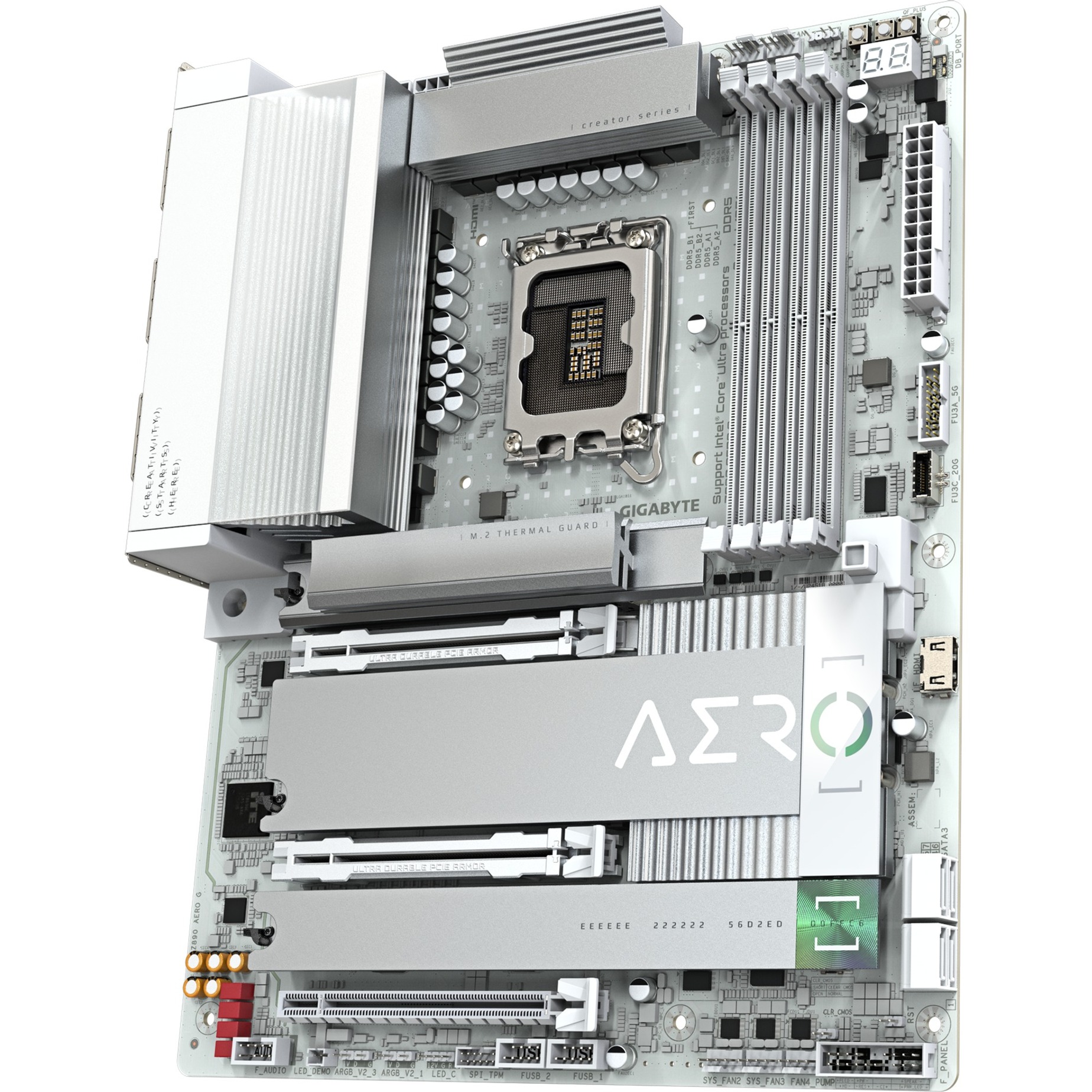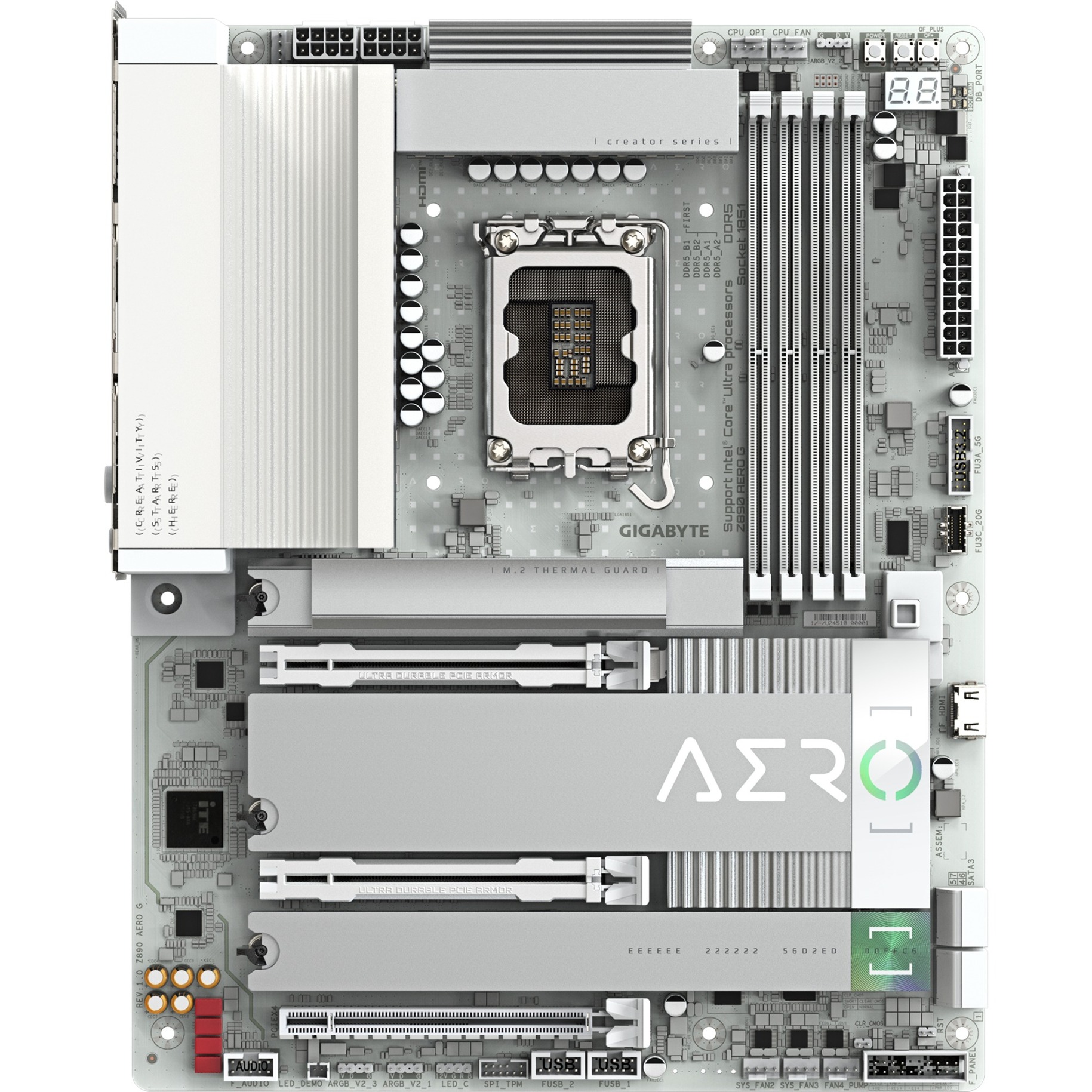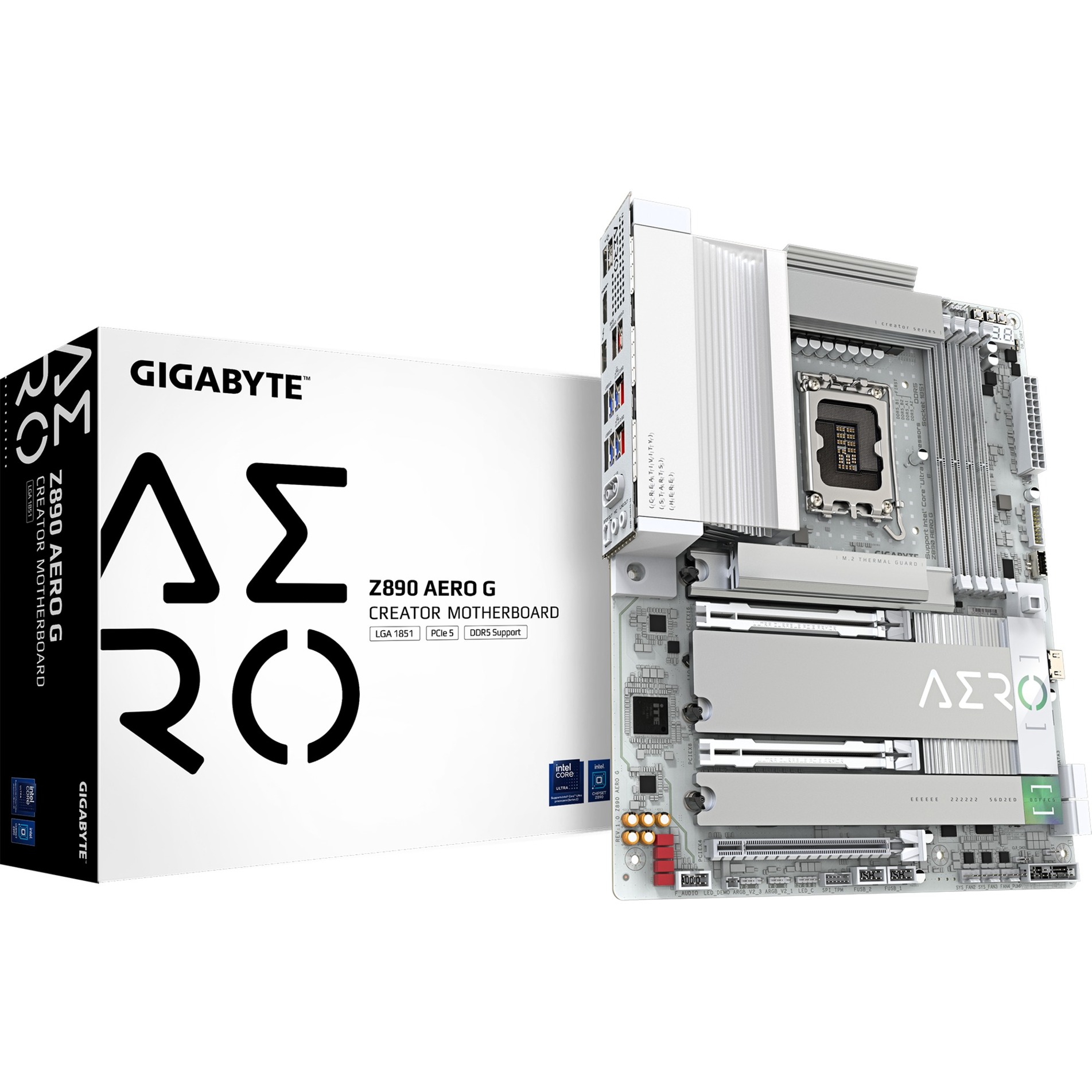 La carte mère GIGABYTE Z890 AERO G est basée sur le chipset Intel® Z890 et prend en charge les processeurs Intel® sur le socket 1851. Elle dispose de quatre emplacements DDR5 pouvant accueillir jusqu’à 256 Go de mémoire vive. La GIGABYTE Z890 AERO G est également équipée de deux emplacements PCIe 5.0 x16 et d’un emplacement PCIe 4.0 x16. La GIGABYTE Z890 AERO G dispose également d’un son à 8 canaux, d’une interface LAN à 2,5 gigabits, du Wi-Fi 7, du Bluetooth 5.4, de quatre ports SATA3, de cinq ports M.2, de deux interfaces USB-A 2.0, de quatre interfaces USB-A 3.2 (5 Gbit/s) et de deux interfaces USB-A 3.2 (10 Gbit/s).