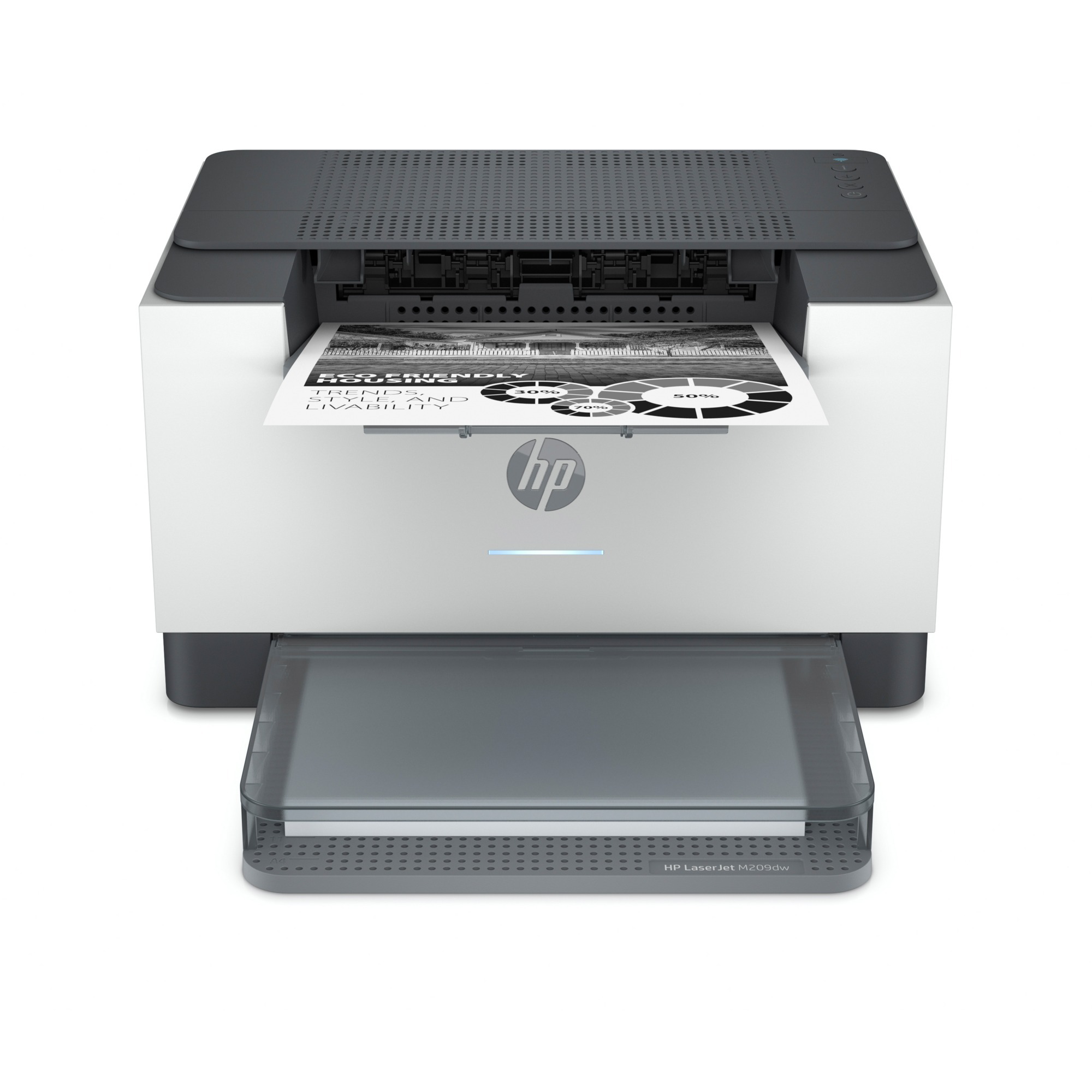 La LaserJet M209dw est un partenaire bureautique productif au format compact : cette imprimante laser monochrome atteint une vitesse allant jusqu’à 29 pages par minute (ISO) et offre une connectivité polyvalente. En plus d’une interface USB, elle dispose d’un port LAN et du WLAN. Ainsi, la M209dw prend en charge l’impression directe depuis des smartphones ou des tablettes sous iOS ou Android. L’unité recto verso pratique pour l’impression automatique des deux côtés permet un fonctionnement efficace. Un affichage LED en façade fournit des indications d’état bien visibles. Avec HP Instant Ink, de l’encre ou du toner est toujours disponible en temps voulu si nécessaire. Les premières cartouches d’encre ou cartouches de toner sont livrées après l’enregistrement sur le site HP.