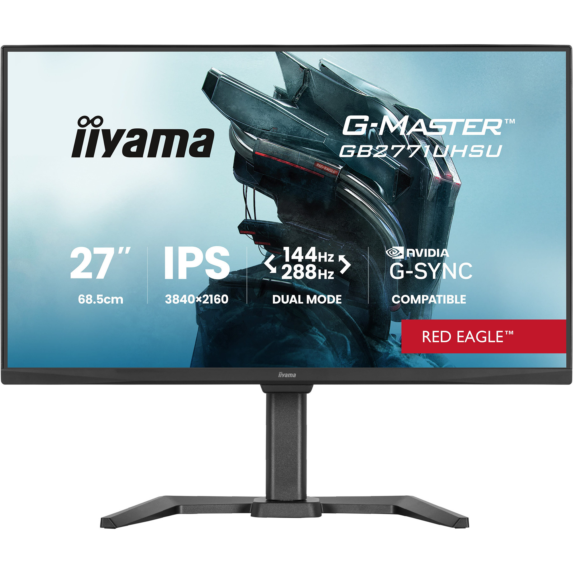 Avec le Iiyama G-Master GB2771UHSU-B1, on libère tout le potentiel du gaming : la dalle IPS de 68,6 cm (27″) séduit par des couleurs particulièrement homogènes, de larges angles de vision et un temps de réponse extrêmement rapide de seulement 0,8 ms (MPRT). Avec le GB2771UHSU-B1, on profite de détails en haute résolution en 4K à 144 Hz de fréquence de rafraîchissement pour des aventures solo fluides et immersives, et l’on peut passer, si nécessaire, à une fréquence de rafraîchissement ultra réactive de 288 Hz en Full HD lorsque vient le moment de la compétition intense. Un taux de rafraîchissement pouvant atteindre 288 Hz, des haut-parleurs intégrés, un hub USB et une sortie casque rendent le GB2771UHSU-B1 compétitif. Grâce à la prise en charge de Free-Sync-Premium ainsi qu’à la compatibilité G-Sync, les joueurs bénéficient d’une expérience fluide sans saccades, ralentissements ni effets de déchirement.