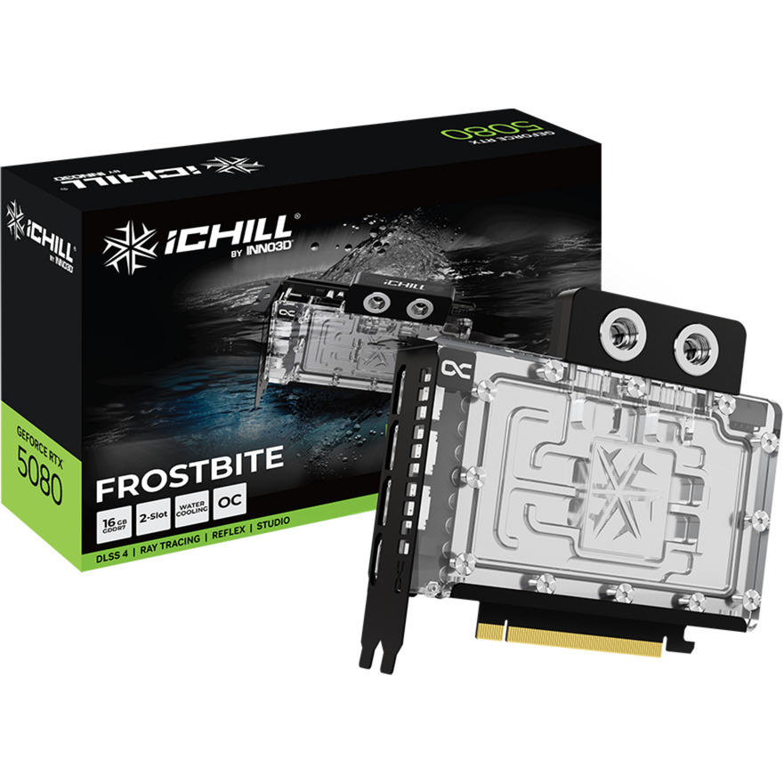 L’INNO3D GeForce RTX 5080 ICHILL FROSTBITE est une carte graphique haut de gamme alimentée par le GPU GeForce RTX 5080 de NVIDIA. La puissante série de cartes graphiques GeForce RTX 50 est basée sur l’architecture NVIDIA Blackwell et offre de nouveaux niveaux de réalisme de jeu, de vitesse et d’efficacité énergétique, des fonctionnalités d’IA telles que la génération d’images, la génération de plusieurs images et des expériences VR réalistes. Parmi les autres fonctionnalités, citons le ray tracing en temps réel, la reconstruction de rayons, NVIDIA Ansel, avec des outils complets pour prendre des captures d’écran dans les jeux, ainsi que NVIDIA G-SYNC, G-SYNC HDR, NVIDIA DLSS 4, ShadowPlay, Highlights, NVENC Gen 9, encodeur et décodeur AV1. Le GPU installé sur la INNO3D GeForce RTX 5080 ICHILL FROSTBITE dispose de 10752 cœurs CUDA. La mémoire GDDR7 de 16 Go dispose d’un contrôleur de mémoire de 256 bits.